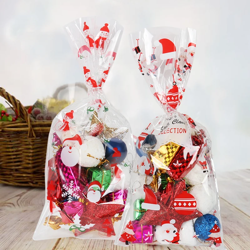50 шт. рождественские пакеты с изображением Санта-дереваподарочная упаковка пластиковых пакетов для новогоднего вечерние РА