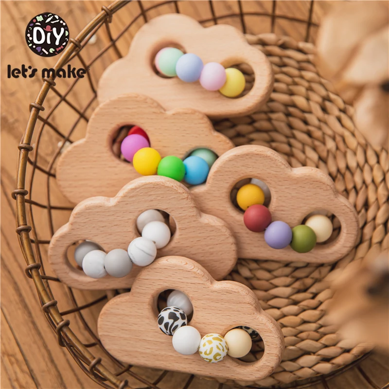 Детские игрушки-погремушки Let's Make, с разноцветными облаками, игрушки Dream безопасный, деревянный, браслет-пустышка связанная крючком погремушка, подарок для младенцев набор для прорезывания зубов