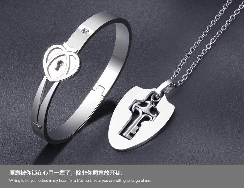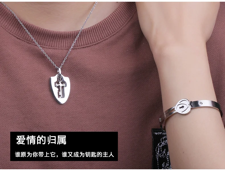 2 шт.компл. пара концентрических замков браслет ожерелье пара модных брендов ожерелья женский браслет креативный мужской ключ интерлок