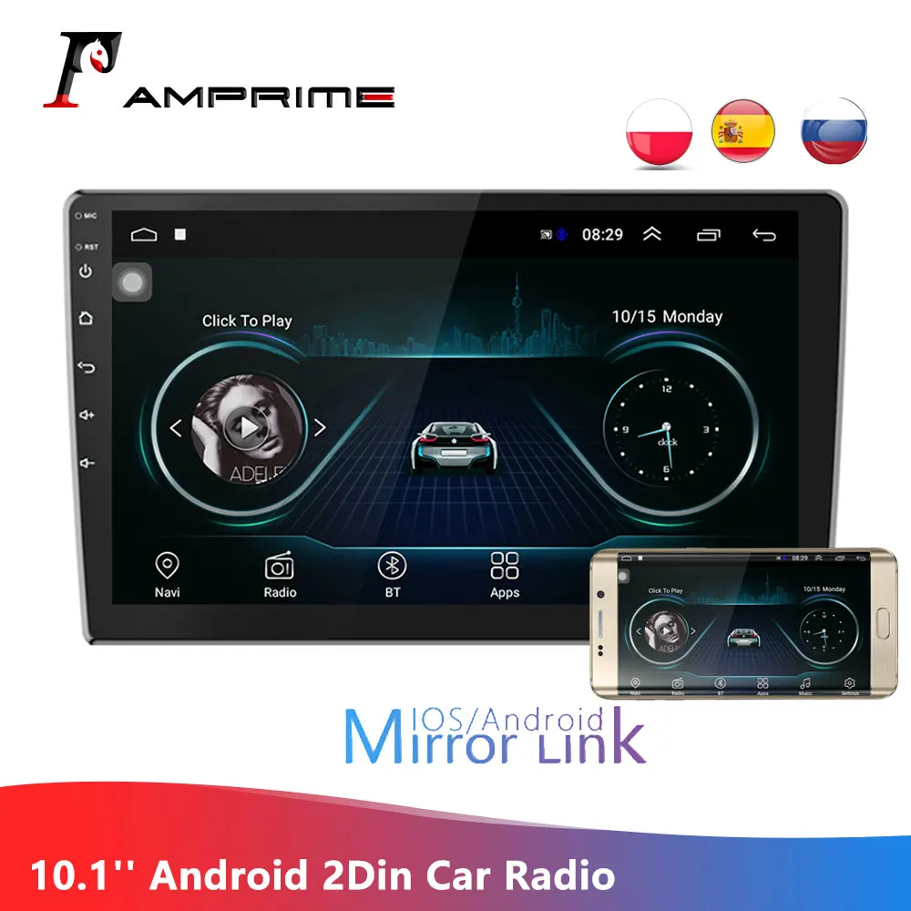 AMPrime 10,1 ''Android 2Din автомобильный радиоприемник 2.5D с закаленным стеклом и зеркальным соединением GPS стерео автомобильный MP5-плеер Bluetooth Wi-Fi FM 2din Авторадио