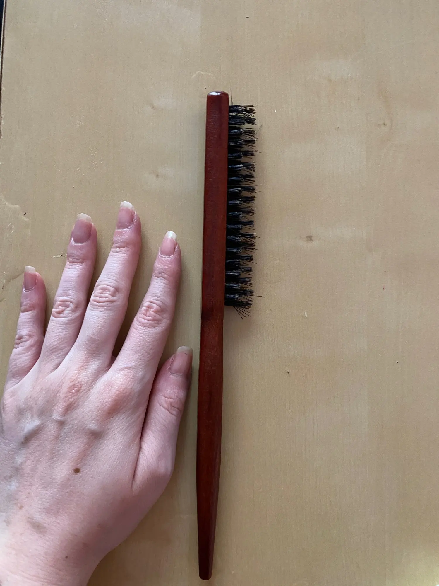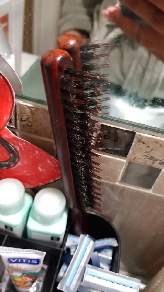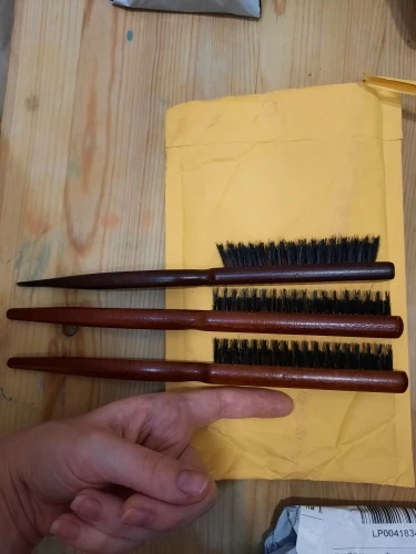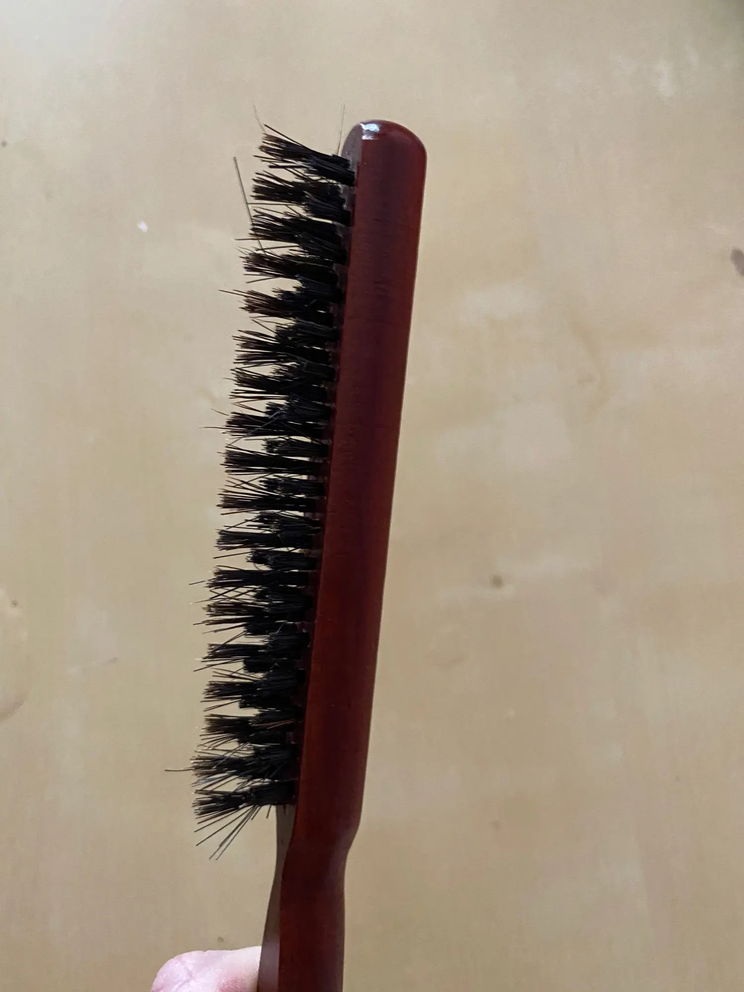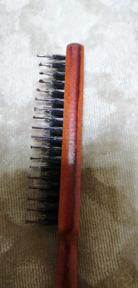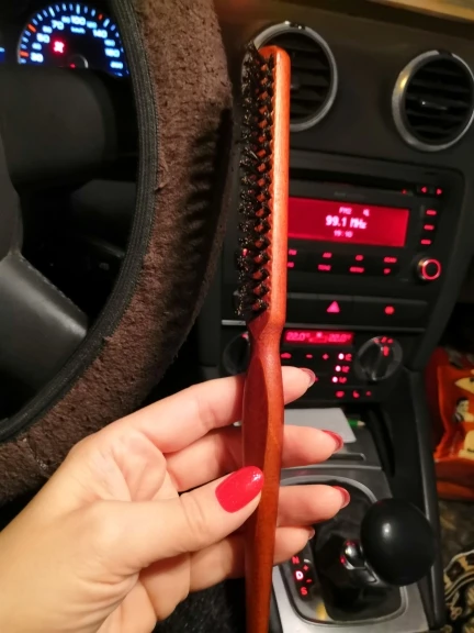 Так то хорошая штука для создания прикорневого начеса но.... Сама расчёска из трех редов щетины, средний ряд она не проклеена, а просто вставлена в дырочки. После первого использования осталась вся в голове. И ехала очень долго 2 месяца