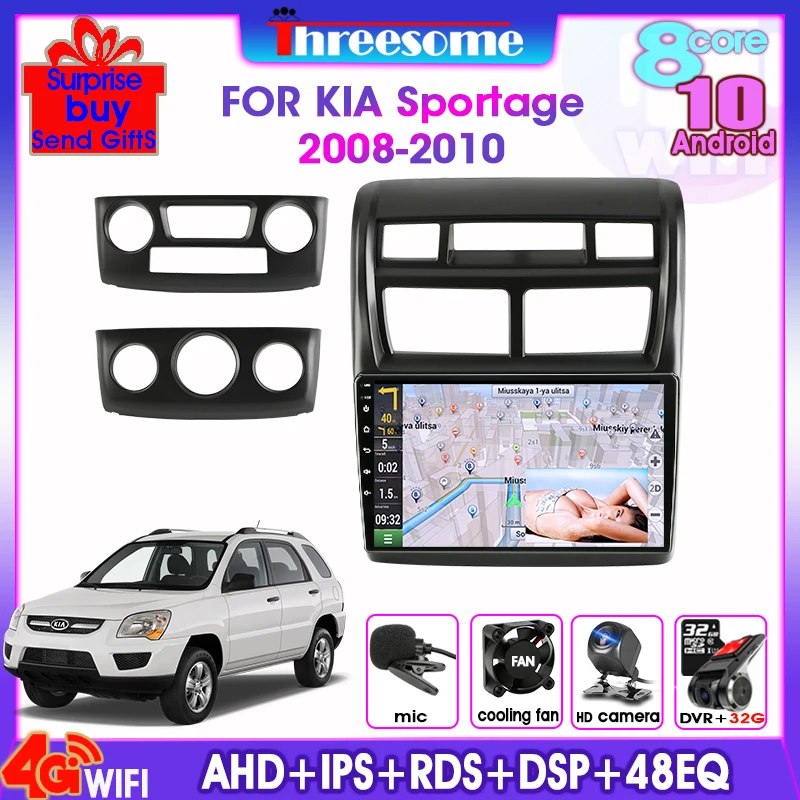 Автомагнитола 2 Din, Android 10, 4 Гб + 64 ГБ, для Kia Sportage 2 2008-2010, RDS, DSP, мультимедийный видеоплеер, 4G + WiFi, навигация, GPS, головное устройство