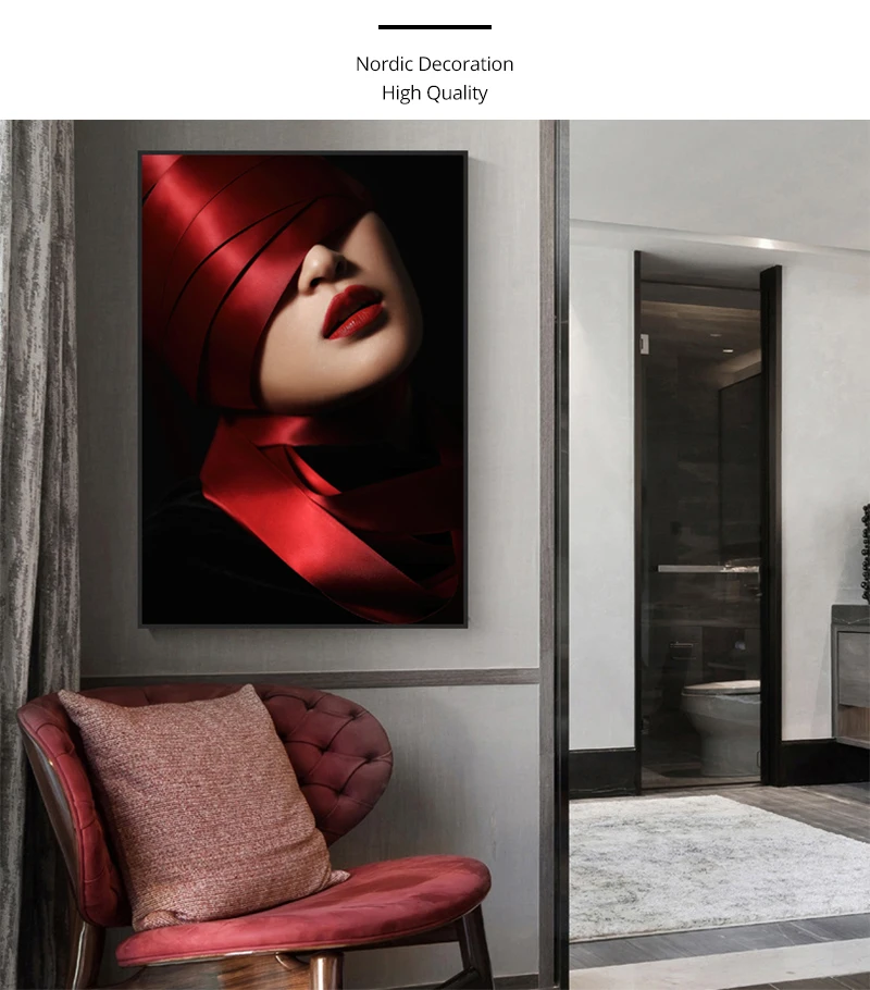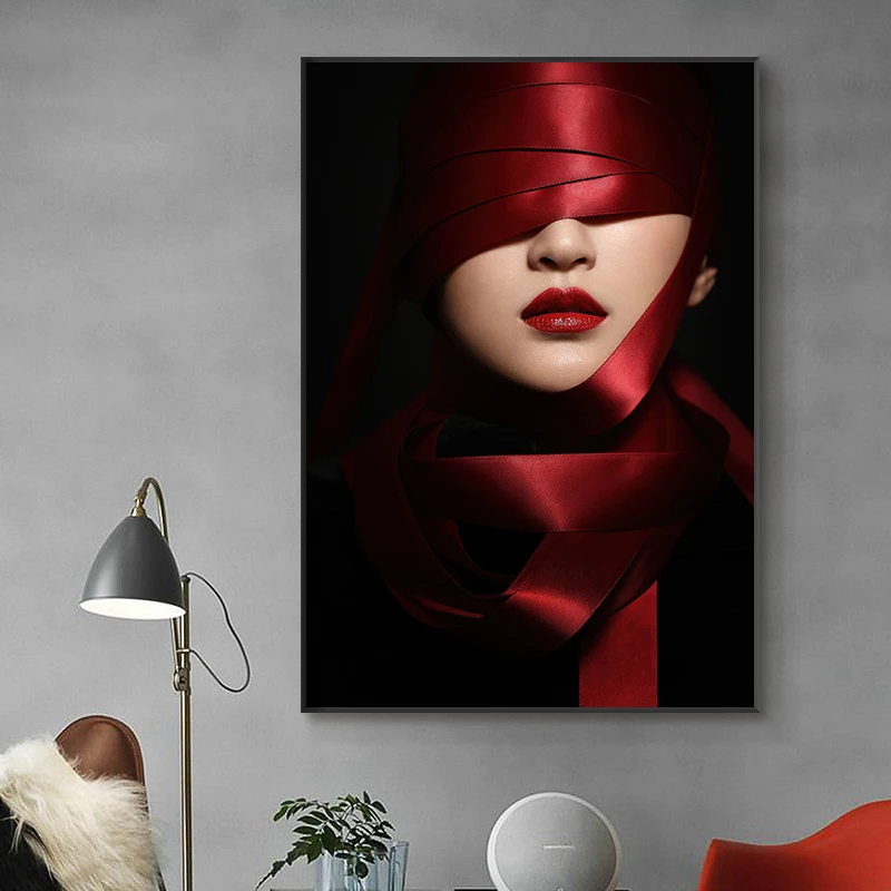 Красная лента шляпа красивая женщина Абстрактная Картина на холсте Печать плакаты картины настенное искусство спальня гостиная украшение для дома