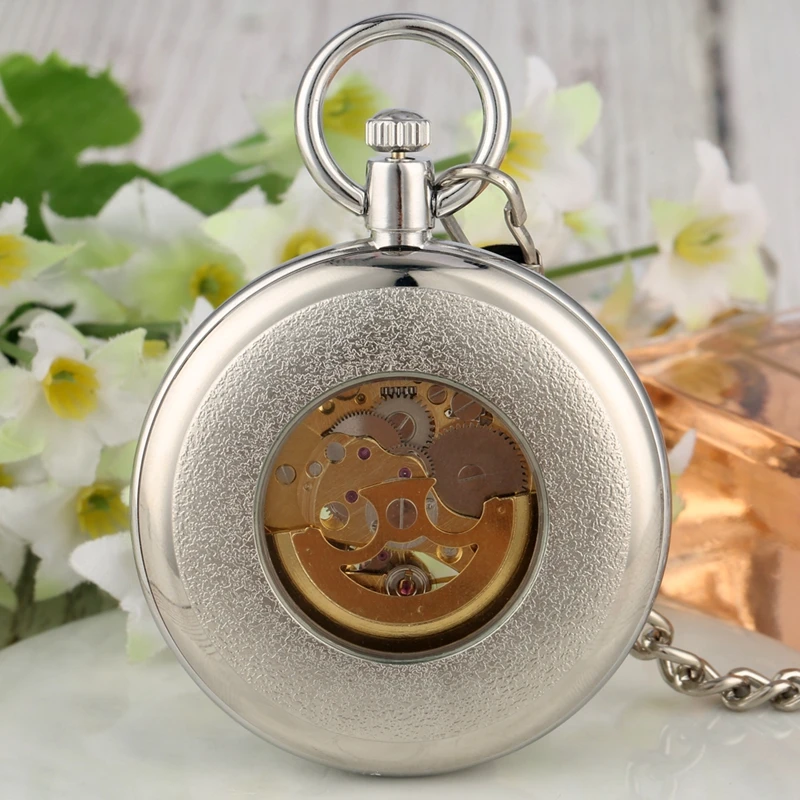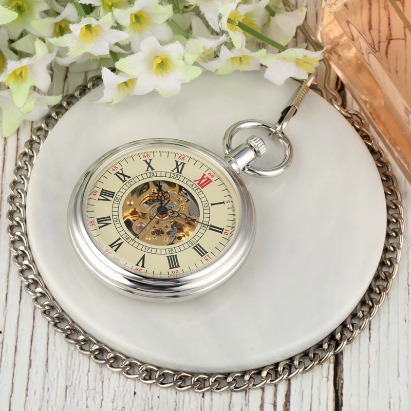 Механические часы-скелетоны с автоматическим заводом в стиле ретро, простые Серебристые карманные с циферблатом и римскими цифрами