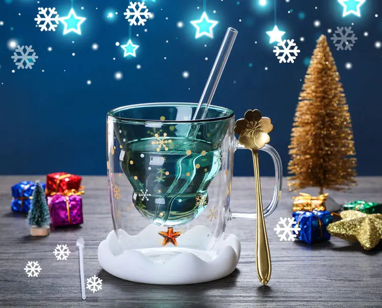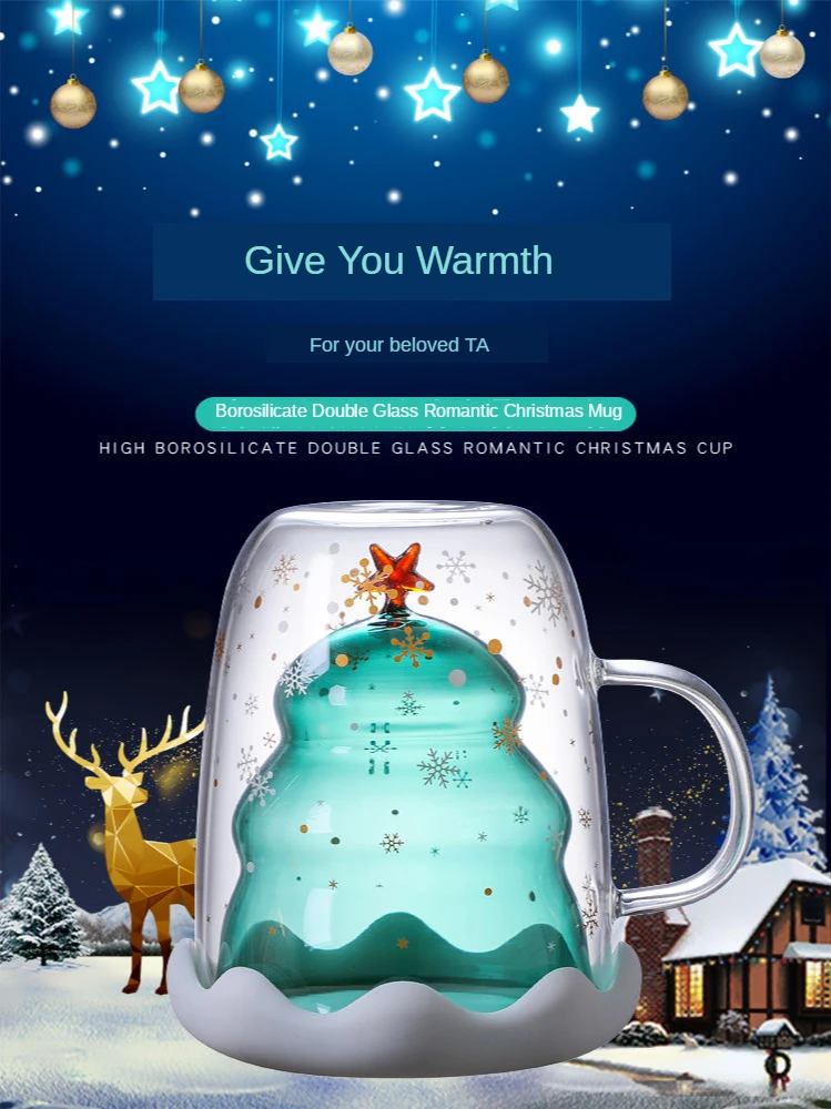 Название: Рождественская елка материал питьевого стекла: боросиликатное стекло высокого качества Калибр: 9,2 см размер корпуса чашки: 6*11 см Емкость корпуса чашки: 300 мл