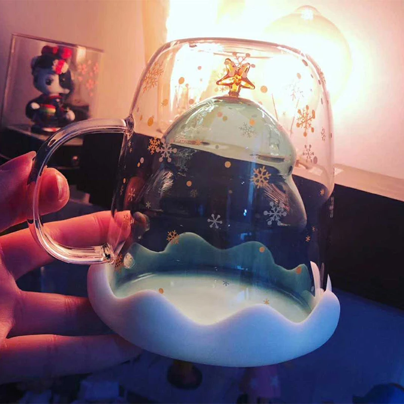300 мл креативная стеклянная чашка с рождественской елкой, термостойкая стеклянная чашка с двойными стенками, Кружка для кофе с крышкой, милые Рождественские сувениры для девочек