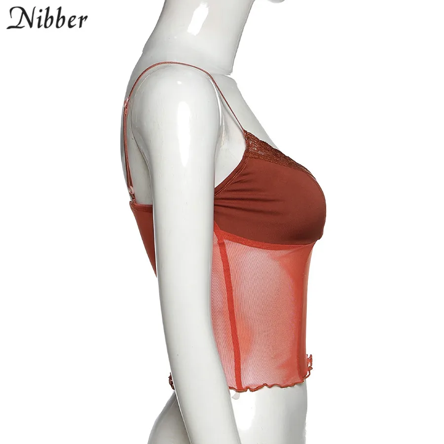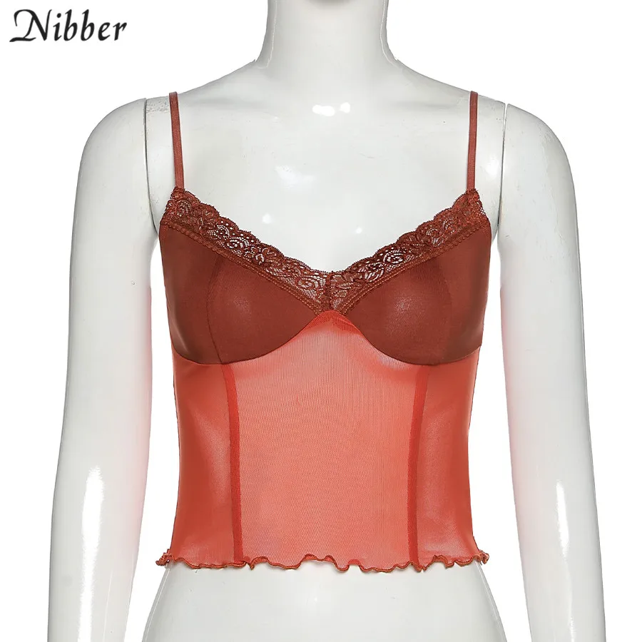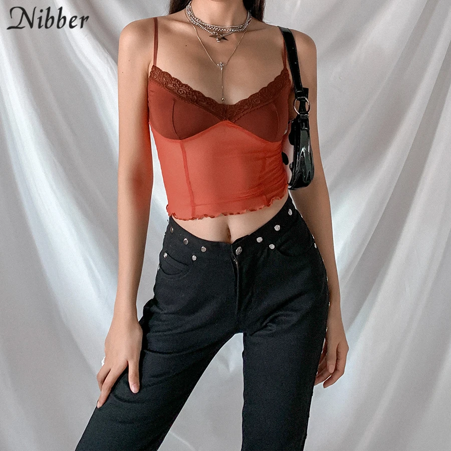 Женский Винтажный кружевной топ Nibber Y2k, сексуальный прозрачный топ на бретельках, клубный Топ без рукавов, лето 2021