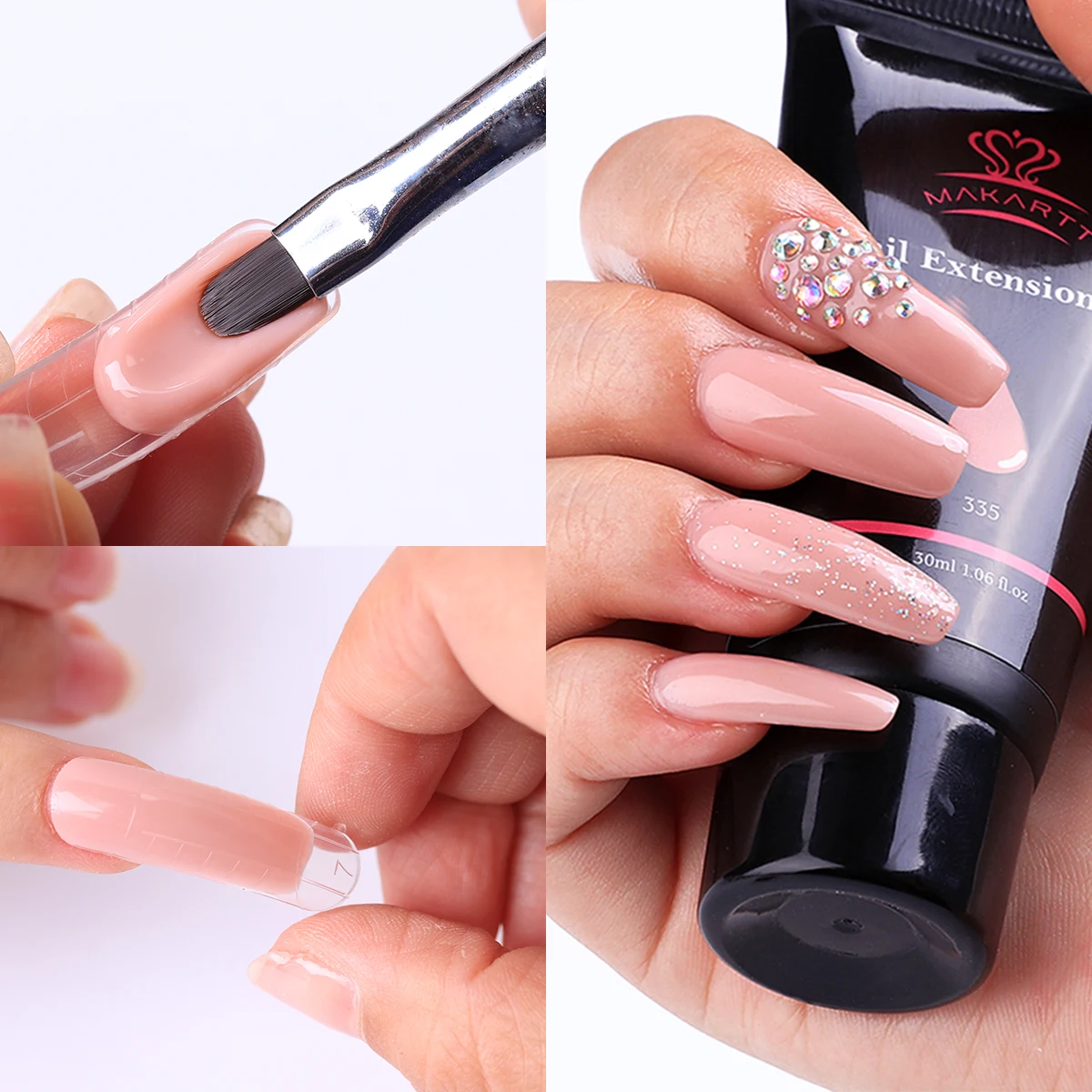 1. Подготовьте ногти2. Выберите гель для наращивания ногтей и нанесите на две формы3. Форма геля на двойная форма4, нанесите двойная форма и вылечите ее5. Снимите двойная форма6. Обрезаем и формируем гель для наращивания ногтей7, нанесите верхнее пальто и вылечите его