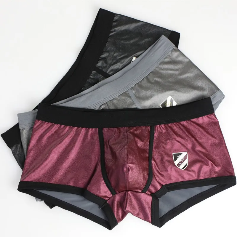 Трусы-боксеры мужские 3 шт.лот, имитация кожи, с выпуклым гульфиком