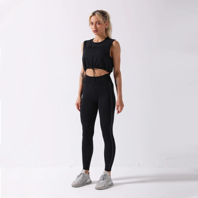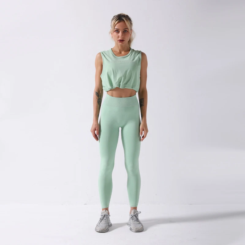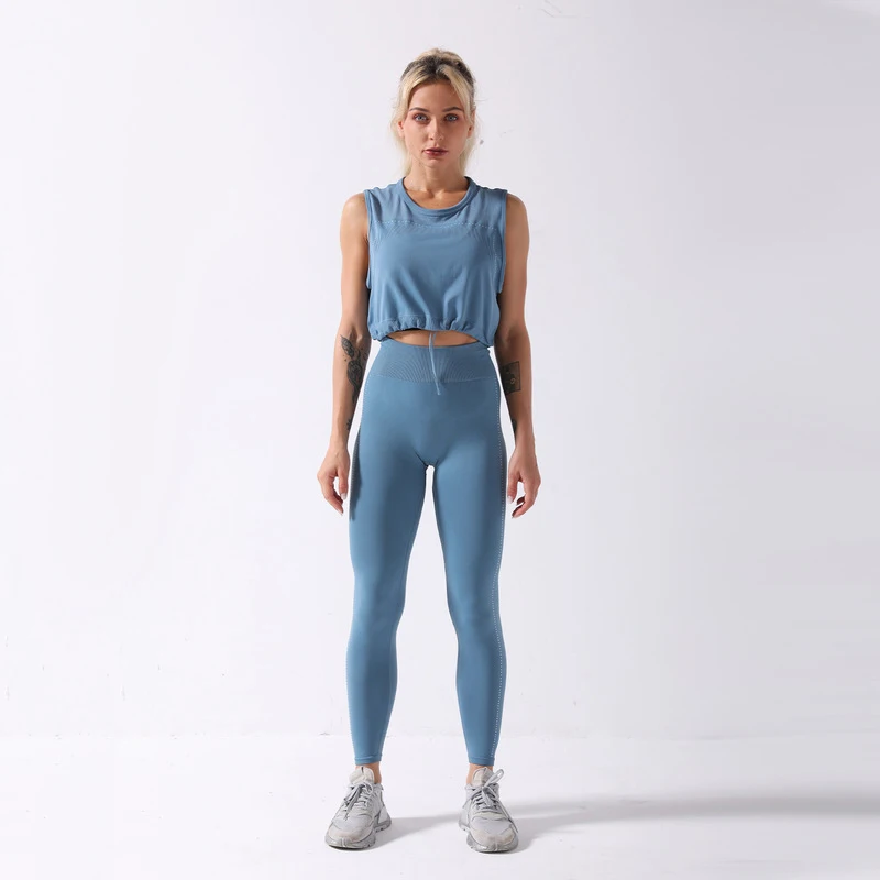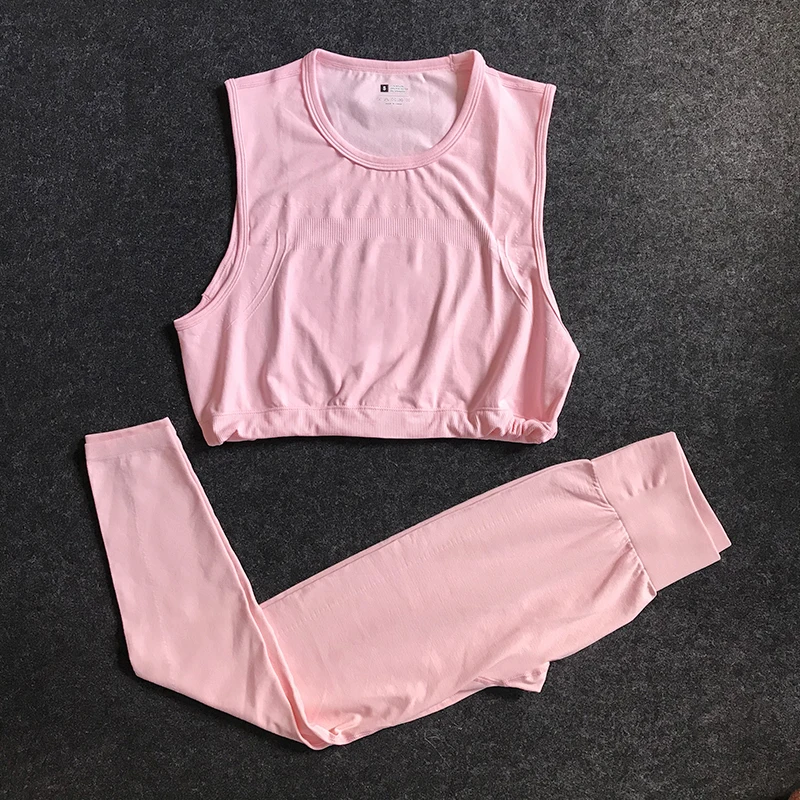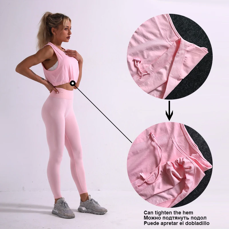 Женский спортивный костюм, бесшовный комплект для йоги, топ без рукавов на завязках, Леггинсы пуш-ап, однотонная спортивная одежда