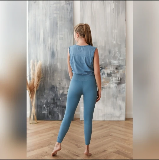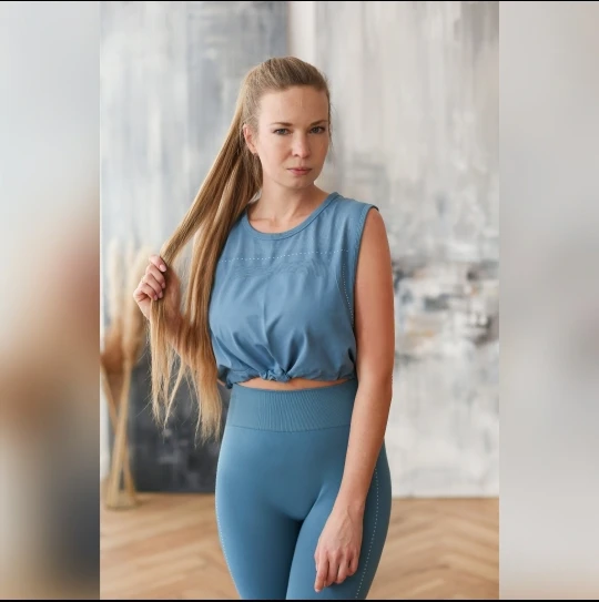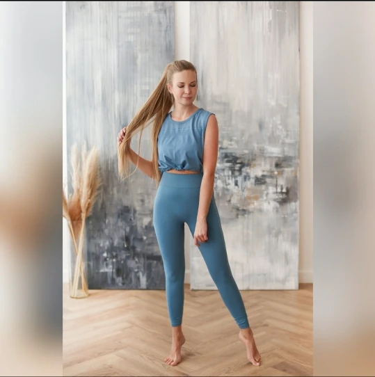 Хороший костюм, ткань очень мягкая, компрессии не ждите, выглядит как на картинке, только резинка гораздо плотнее ткани легинсов, поэтому ткань немного собирается под ней во время упражнений. И есть небольшие косячки по швам. А так довольно комфортно заниматься. Мой рост 162 см.