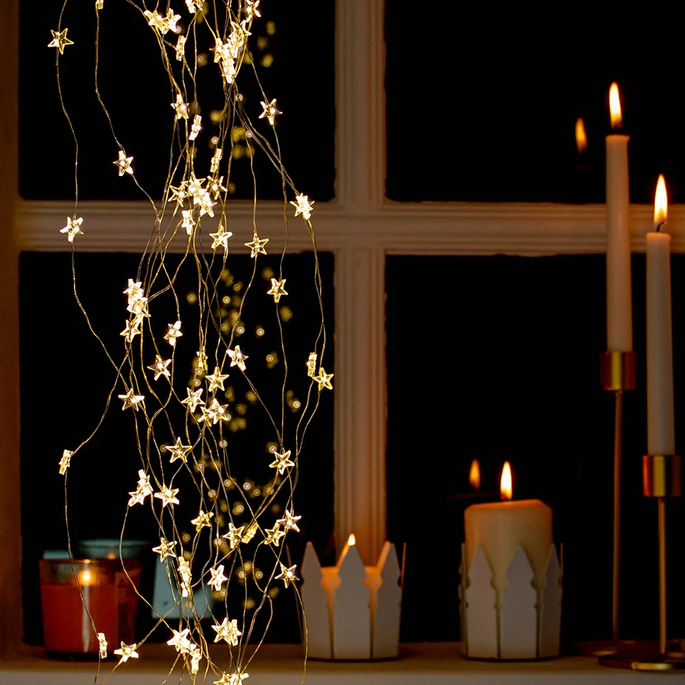 Гирлянда на рождественскую елку со звездами, Декоративная гирлянда для улицы, дома, свадьбы Вечерние ринки, праздника, украшение для сада вечерние, 300