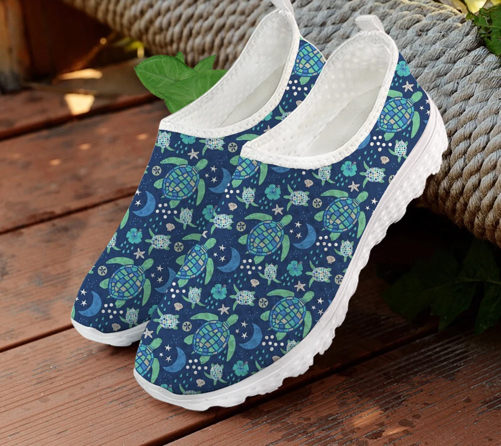 Женские Дышащие сетчатые кроссовки INSTANTARTS, с рисунком морских черепах, лоферы, пляжная обувь, лето обувь на плоской подошве в повседневном стиле