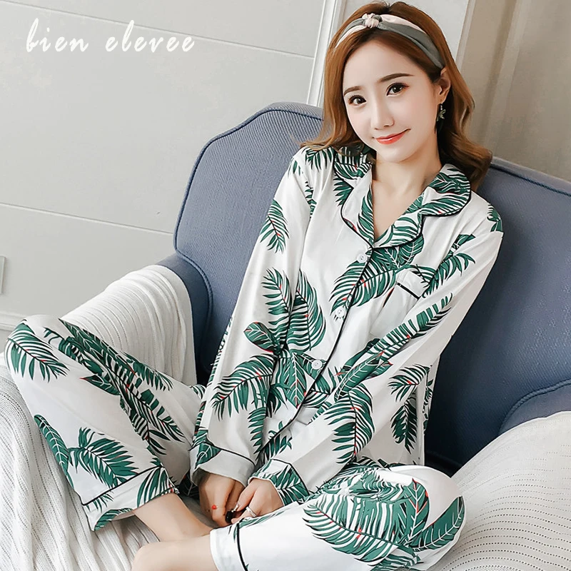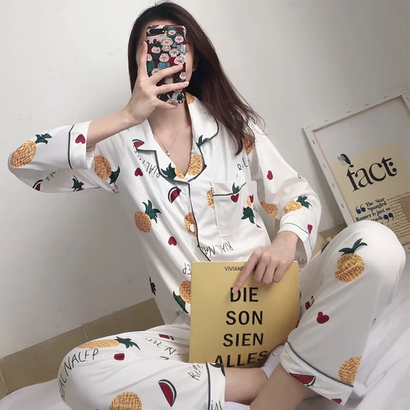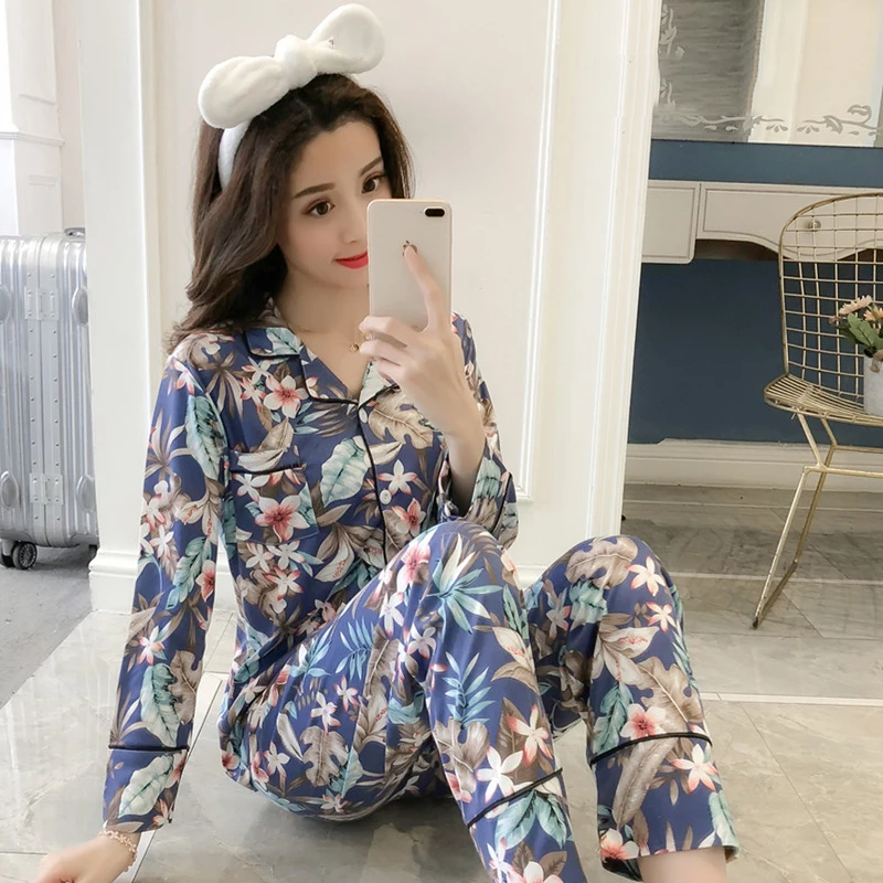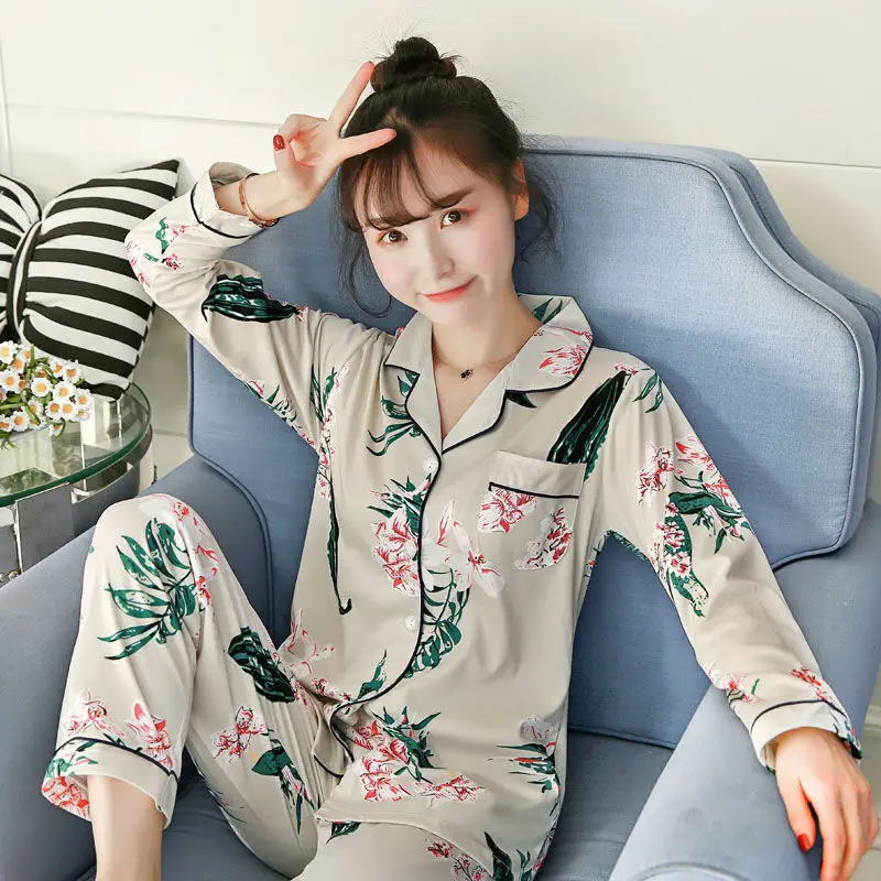 Пижамный комплект, женская пижама с цветочным принтом, Женская пижама с длинным рукавом, пижама, весна-осень, Женская Повседневная Домашняя одежда, домашняя одежда, нижнее белье из двух предметов, женская повседневная домашняя одежда