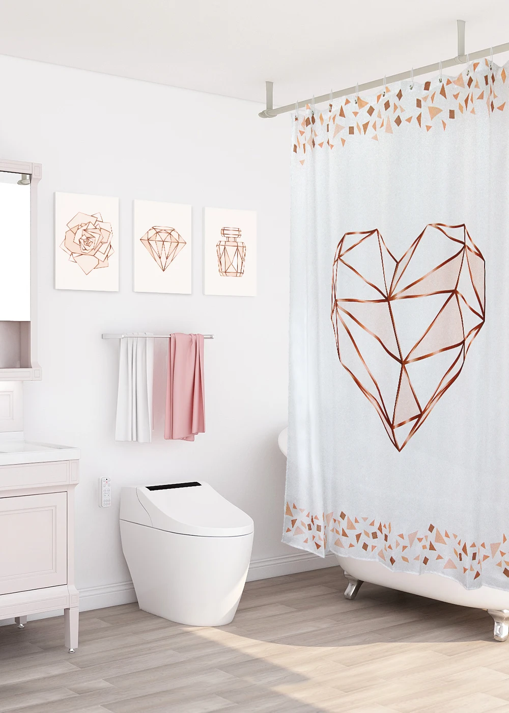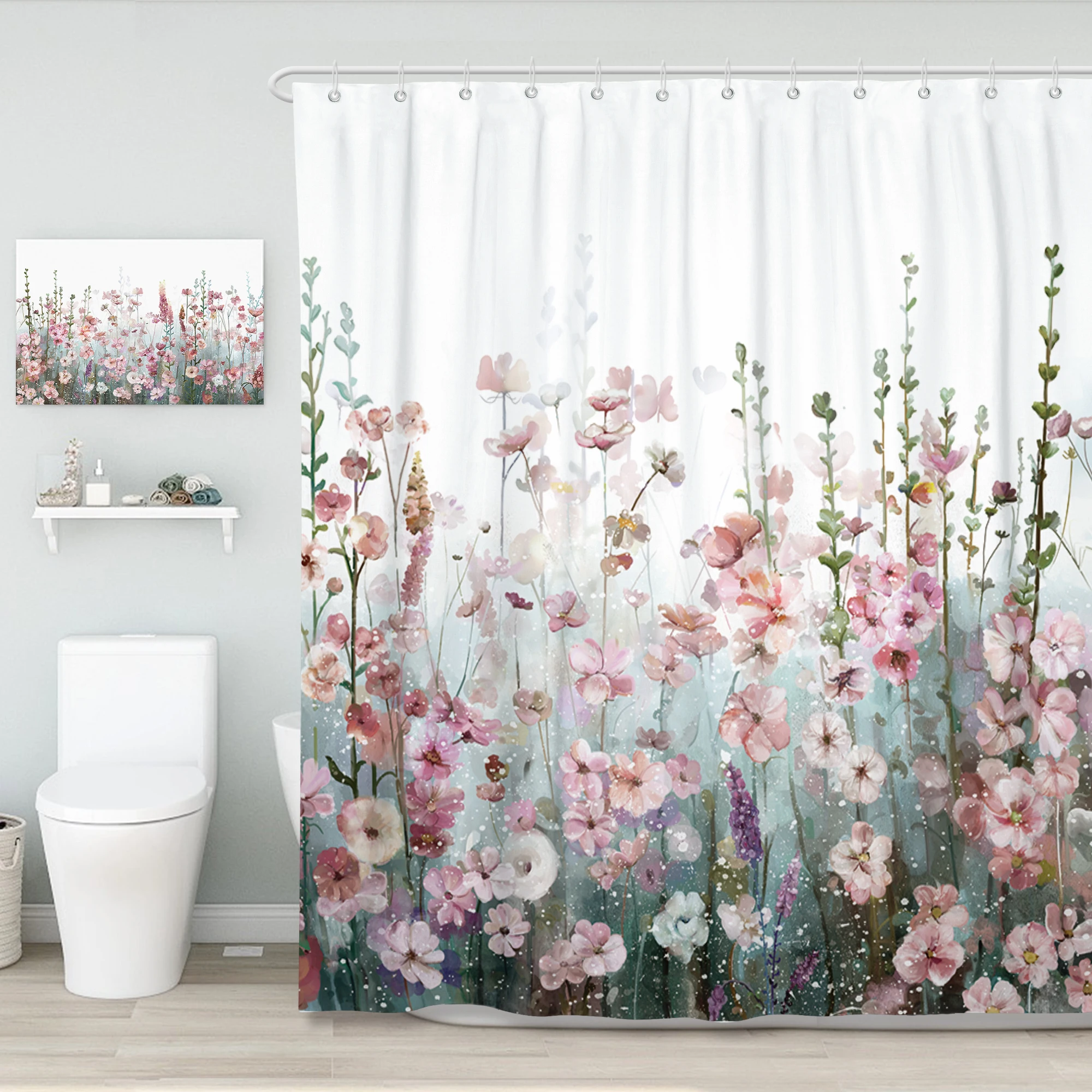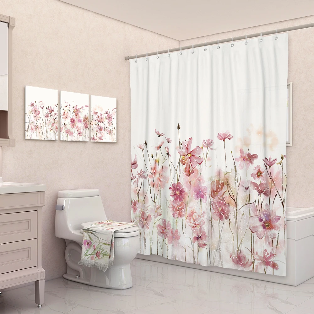 Занавеска для душа из ткани, с цветами, с крючками и кольцами, белая, розовая, серая, фиолетовая, 72x72