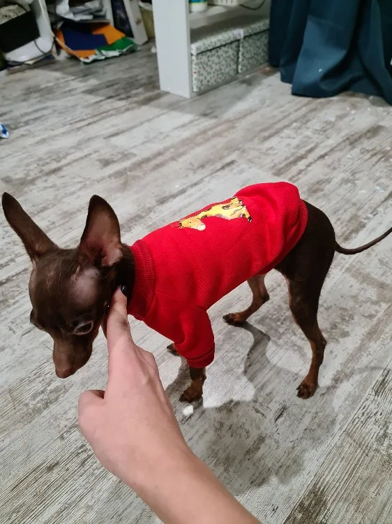 Купленный размер S для мини-йорка 1860 грамм оказался очень мал, хотя я уже несколько лет покупаю ему вещи на Алиэкспресс и никогда не было проблем с размером. Но здесь даже кофточки одного размера не соответствовали друг другу, одна меньше, а другая больше. Жалею, что покупка неудачна. Товар пришёл вовремя. С отслеживанием проблем не было.