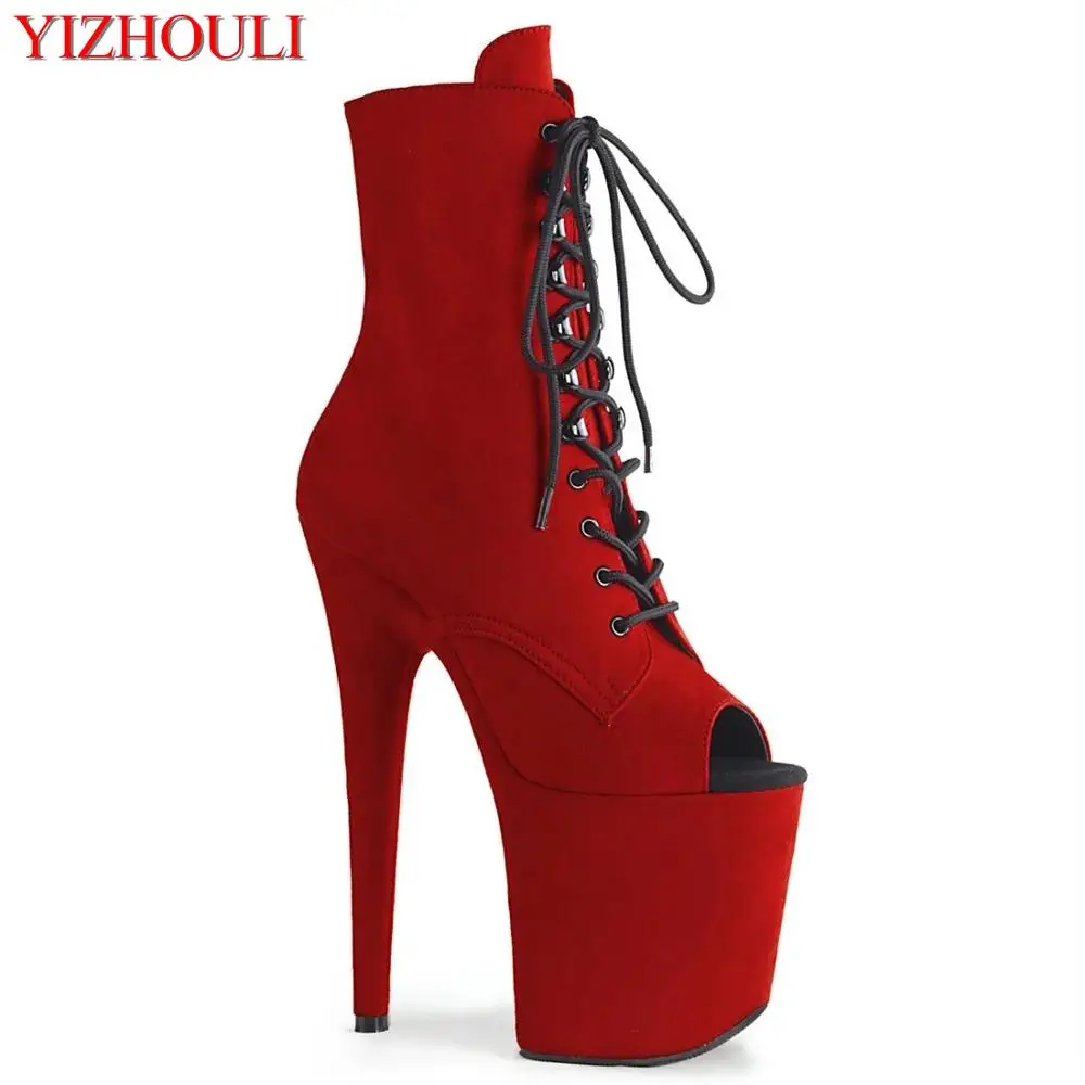 Сапоги высотой 8 дюймов, замшевые туфли с открытым носком, на каблуке-шпильке 20 см, для вечерние ринки, пикантные туфли для танцев на пилоне