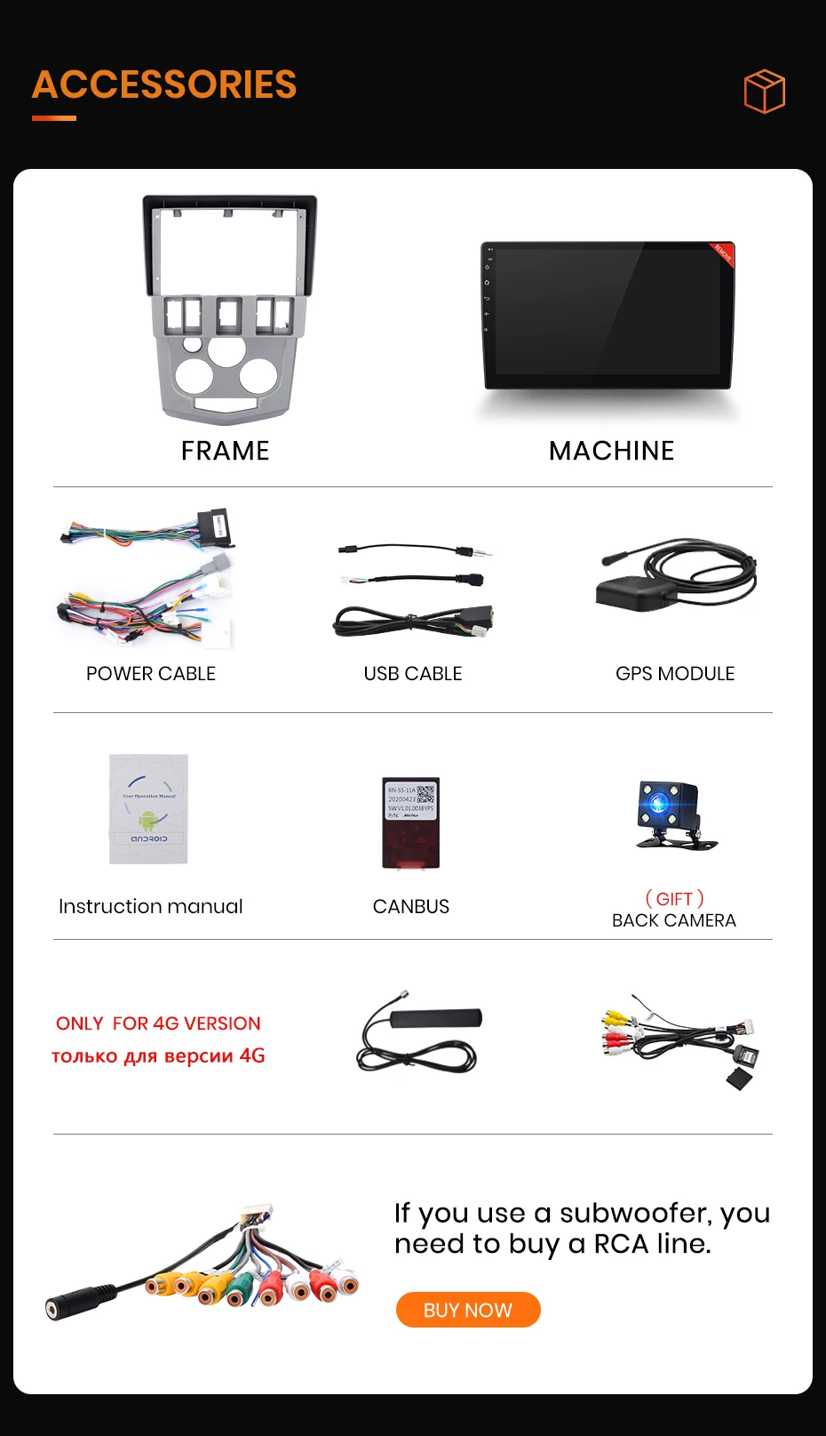 1). После поиска спутникового сигнала успешно в первый раз, время и дата будут обновлены;2). Обратите внимание, что операционная система и предустановленные приложения занимают часть памяти; Карта России занимает около 3 Гб; Карта Европы занимает около 7 Гб;1. В чем разница между WiFi и 4G версией?Устройство оснащено Навигатором, воспроизведением музыки, функцией парковки и т. д. для подключения к Интернету версии Wi-Fi должны служить вашим смартфоном в качестве точки доступа. Для владельцев автомобилей, которые часто используют Интернет во время путешествия, мы рекомендуем купить версии 4G.2. Если вам не нравится товар, возможно ли его вернуть?Если вы не удовлетворены товаром, вы можете вернуть товар, вернуть его на наш склад в России/Испании/Китае.3. Как настроить рулевое колесо управления> Версии WIFIНастройка -- Автомобильная развлекательная информация -- SWC -- сначала нажмите clearall --- затем нажмите на значки. Когда он мигает, нажмите кнопку на рулевом колесе, чтобы соответствовать значку. После успешного обучения цвет изменится.> 4G версииУстановка-genaral -- установка рулевого колесаПожалуйста, нажмите кнопку на рулевом колесе, и в то же время нажмите кнопку на экране, чтобы соответствовать, это изменит цвет после соответствия.Примечание: Если ваш заказ поставляется с canbus, пожалуйста, перейдите для настройки типа canbus, затем кнопка может работать, пожалуйста, свяжитесь с нашей службой поддержки клиентов для получения помощи.4. Как подключить заднюю камеру?1) красный кабель ① подключен к резервному светильник "+";2) черный кабель ② подключен к резервному светильник "-";3) кабель для обнаружения заднего хода ④ (коричневый цвет) подключен к красному кабелю ③, который удлиняется от входного кабеля видео;4) ⑤ кабель не должен быть подключен.