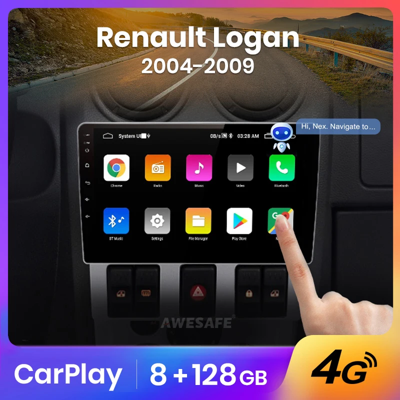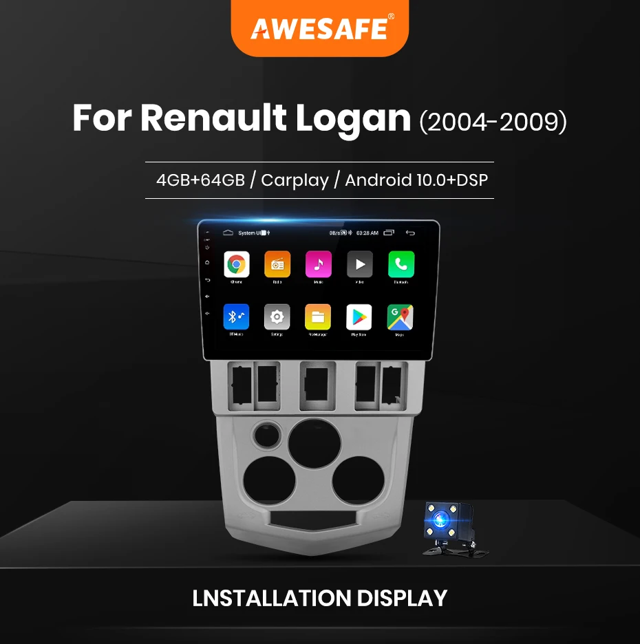 Автомагнитола AWESAFE PX9 для Renault Logan 1 2004-2009, мультимедийный видеоплеер с GPS, 2din, Android 10,0, 2 ГБ + 32 ГБ