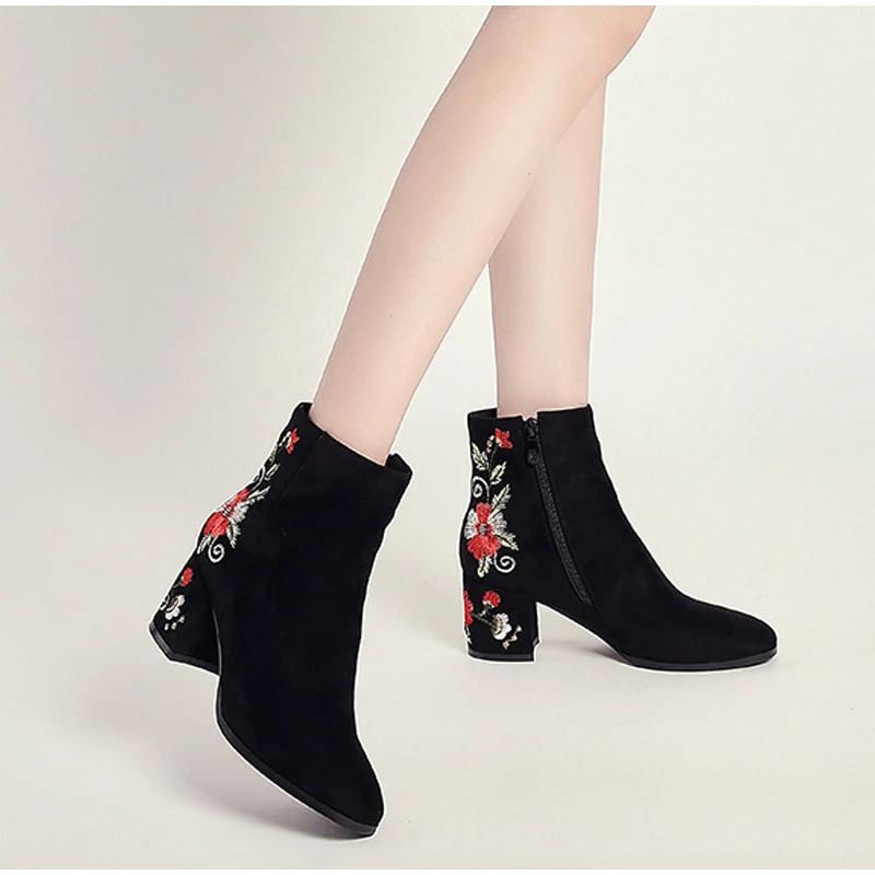 Популярные женские короткие сапоги с вышивкой на высоком каблуке, у...