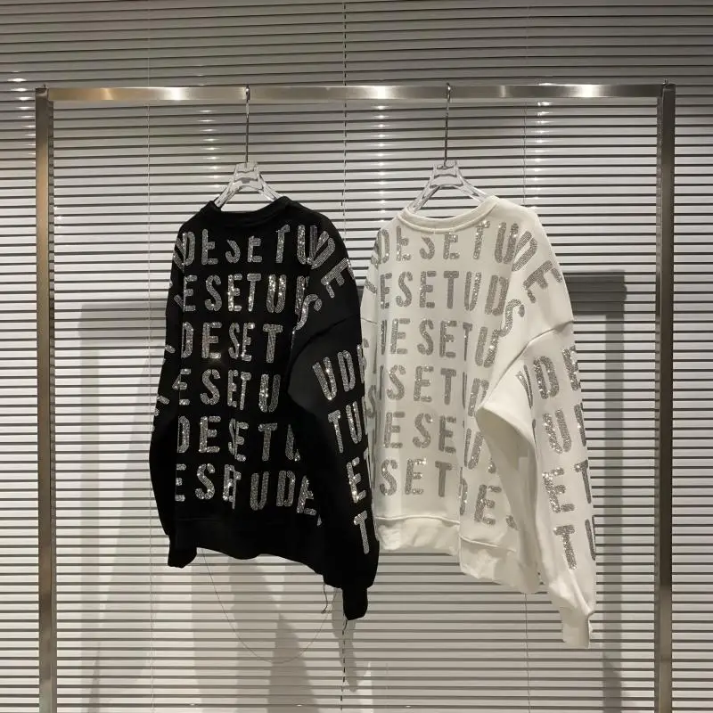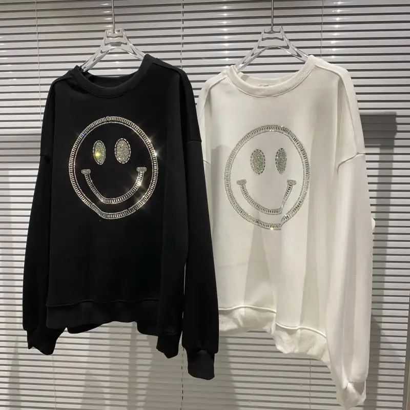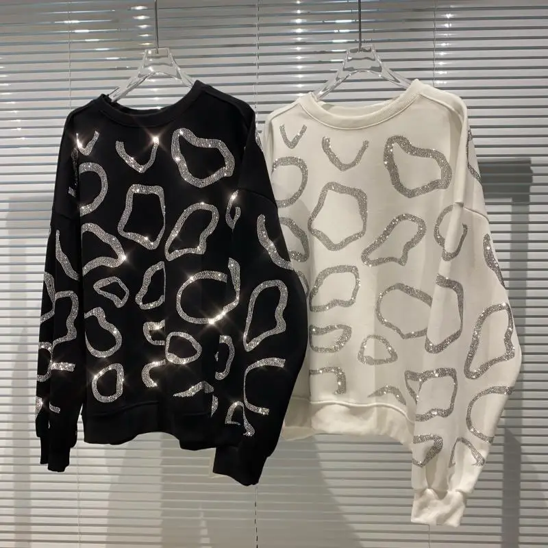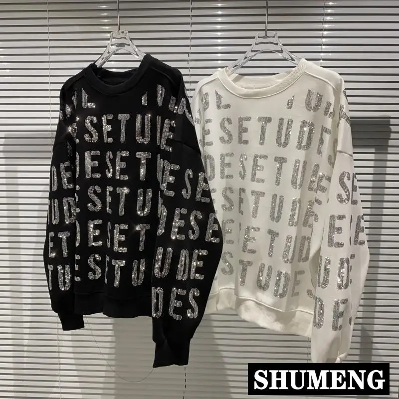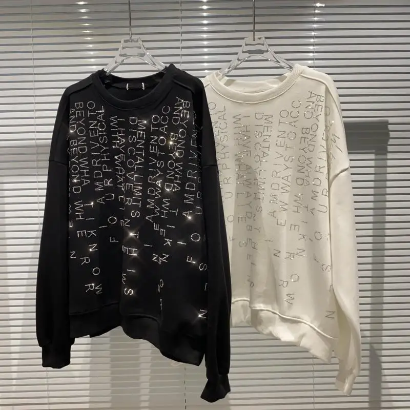 Новинка осени 2021, толстовка с надписью Стразы, Модный пуловер с круглым вырезом и длинными рукавами, топ, женские рубашки