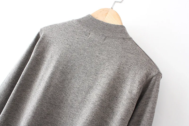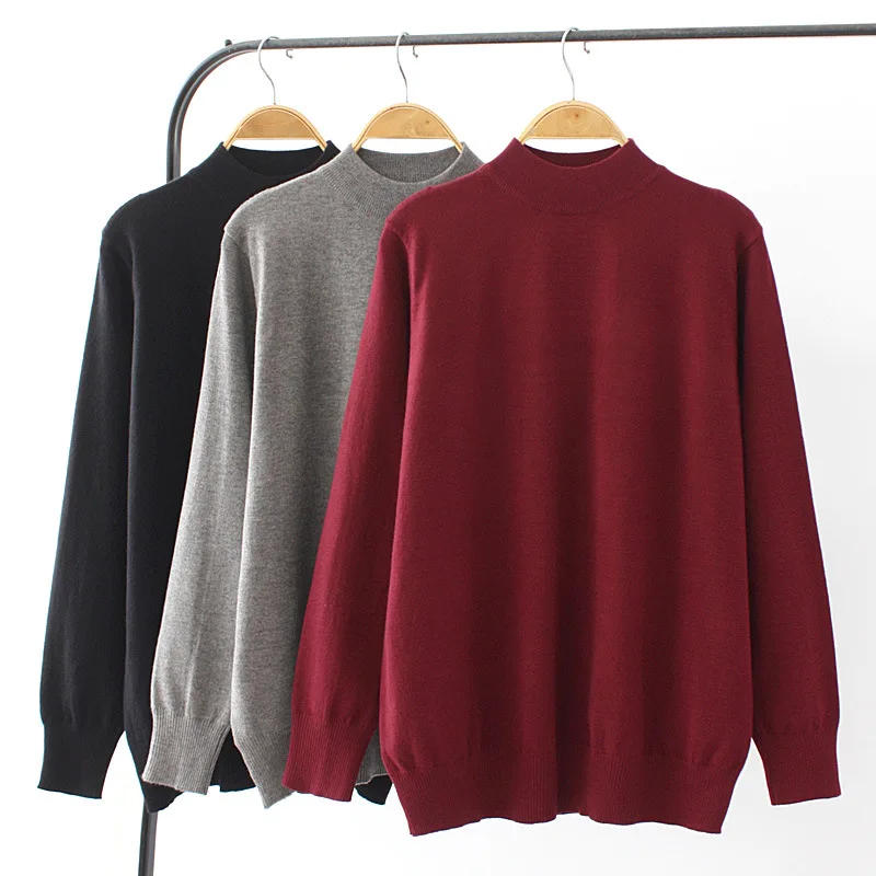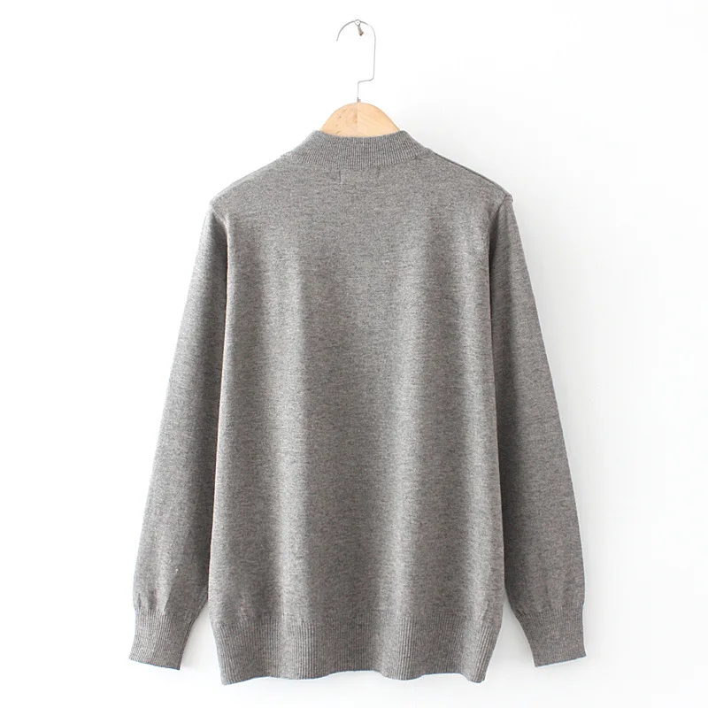 Осенний свитер для женщин Свободный пуловер с воротником Женский однотонный вязаный свитер тонкий джемпер Женский Свитер оверсайз