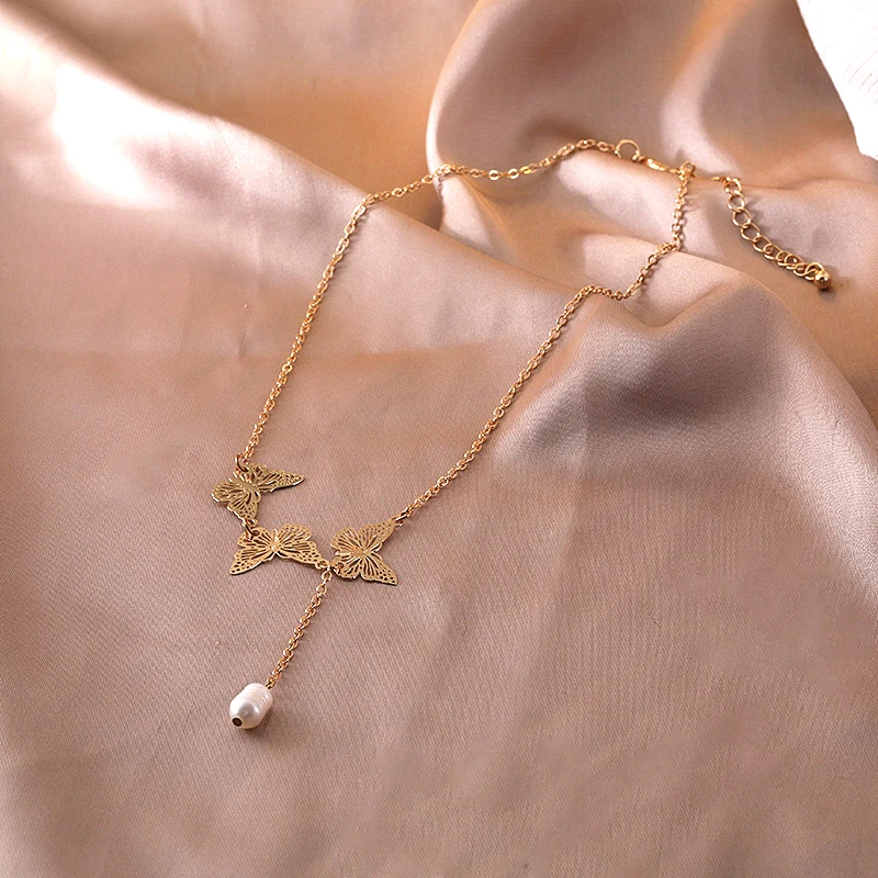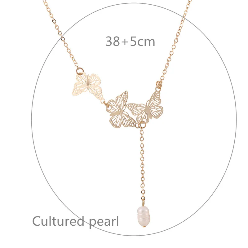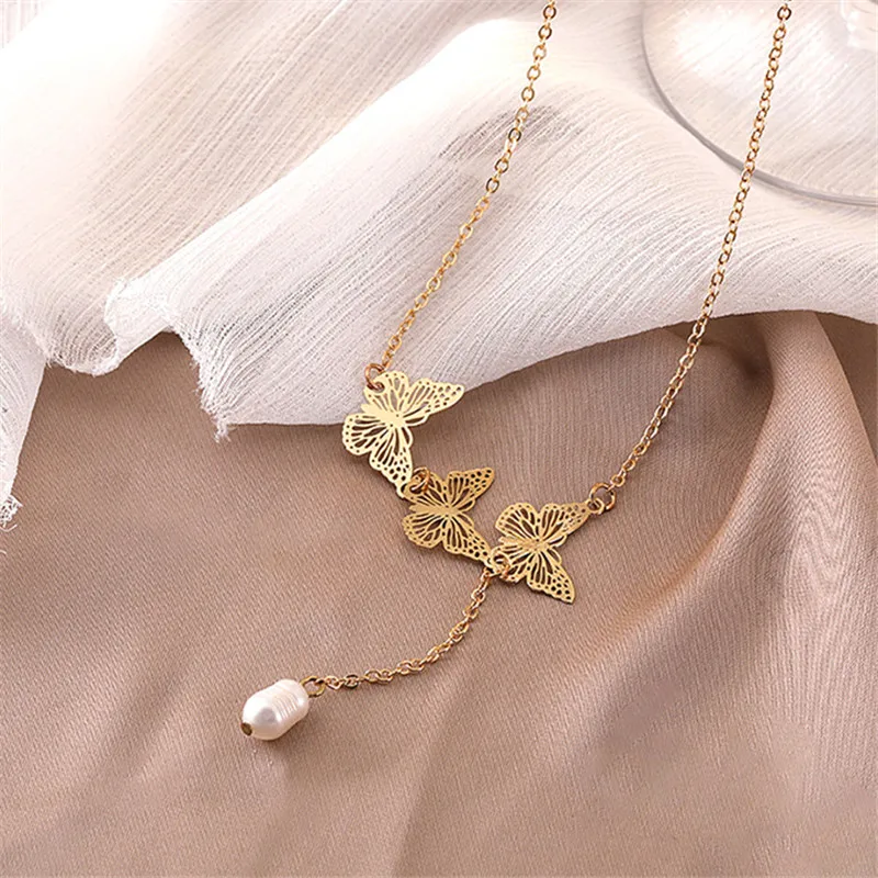 Ожерелье в богемном стиле с пресноводным жемчугом и металлической бабочкой, модное ожерелье в стиле Джокера с отверстиями и короткими ключицами для женщин, свадебные украшения