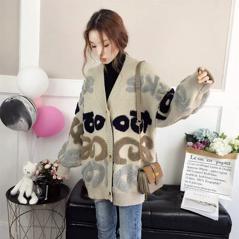 Модный повседневный женский свитер, кардиган на осень и зиму, свобо...