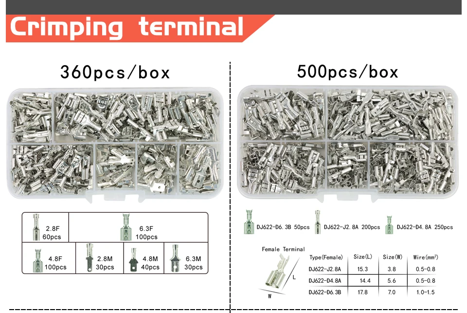Обжимные клеммы 2,84,86,3 мм, изолированный Штекерный и гнездовой п...
