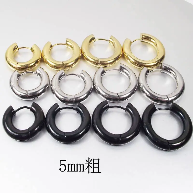 Серьги-кольца из нержавеющей стали для мужчин и женщин, очень толстые круглые украшения с проволокой 5 мм, не выцветают, универсальные, 1 шт.