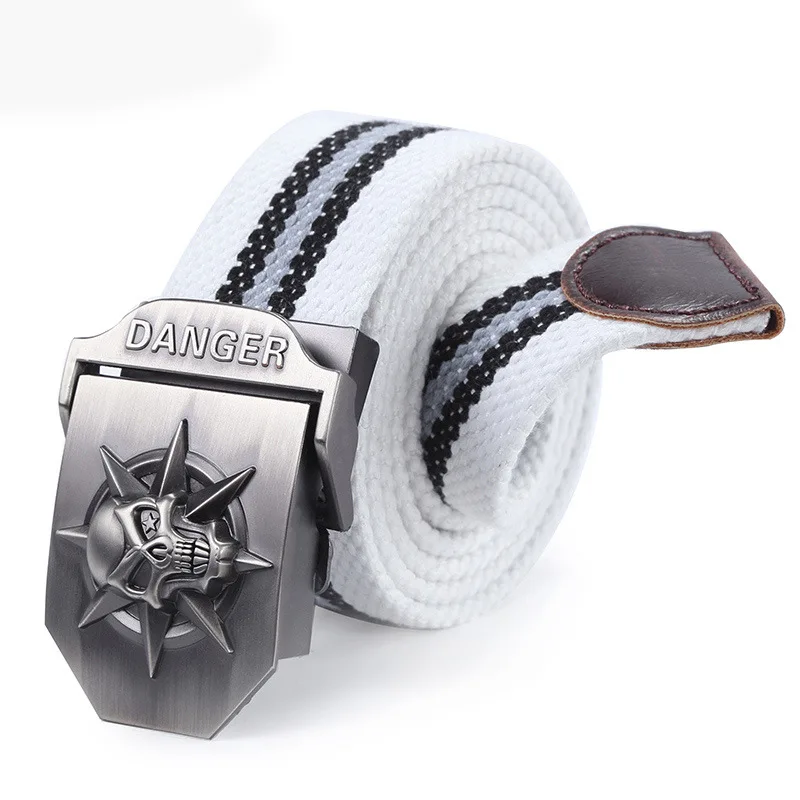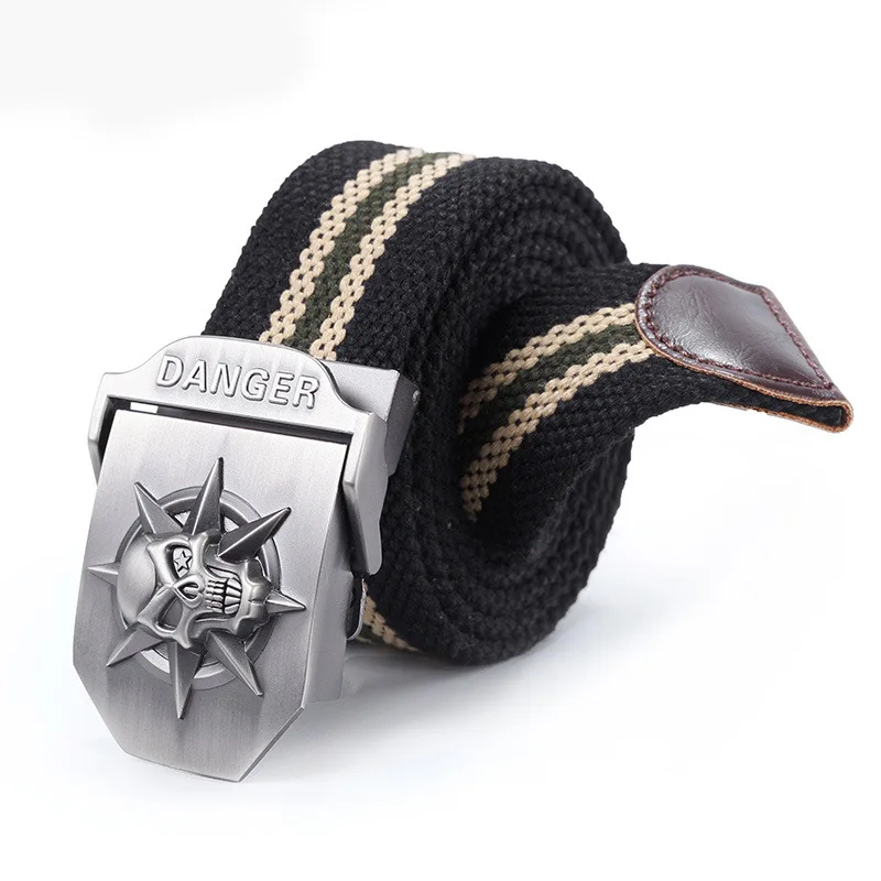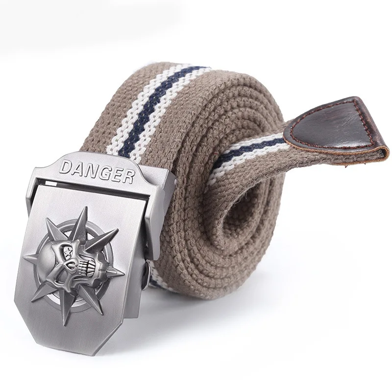 Ремень мужской брезентовый с металлической пряжкой, брендовый Тактический плетеный пояс с широким черепом, для джинсов, утолщенный пояс, 2020 см, 120