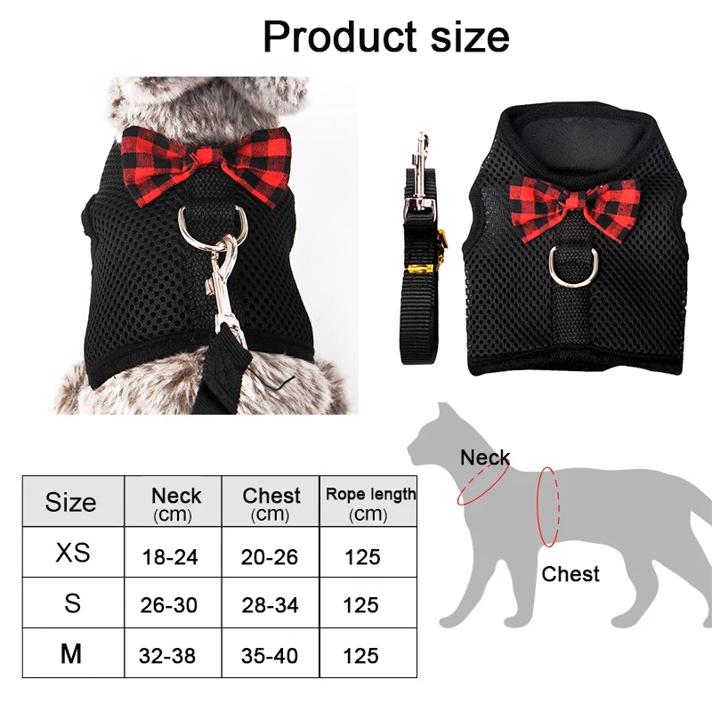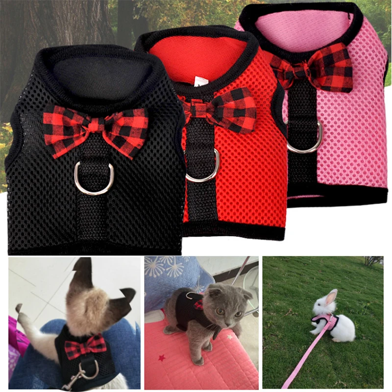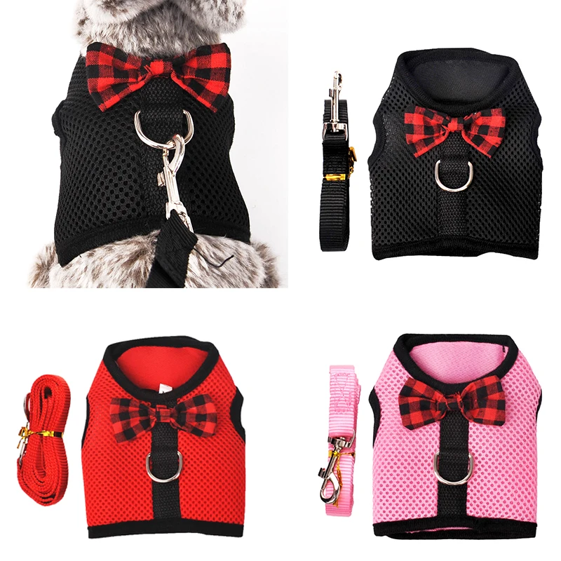 Комплект из жилета и поводка, милая сетчатая дышащая жилетка с бант...