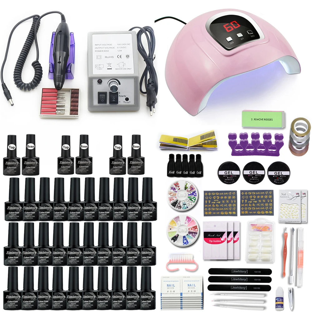 Набор для маникюра, 10, 20 и 30, Цветной Гель-лак для ногтей Вт, с УФсветодиодной лампой, фреза для ногтей 35000RMP