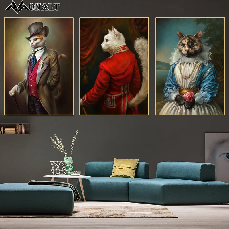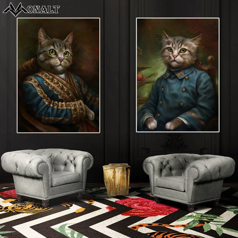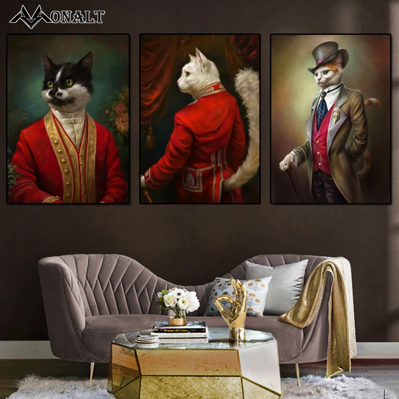 Картина на холсте абстрактные постеры с животными HD среднего возраста кошка собака джентльмен Картина гостиная настенная Художественная печать декоративные картины на заказ Классический Большой размер прикроватная картина