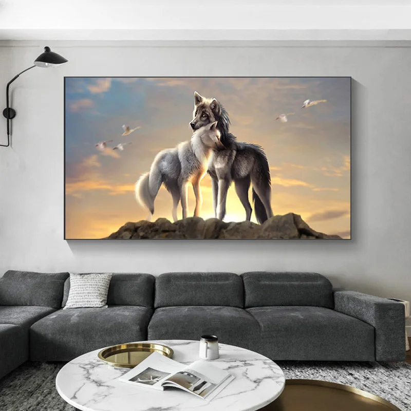 Современные животные, пара волков, животные, искусство, холст, живопись, постеры и печать, настенное искусство для гостиной, домашний декор (без рамки)