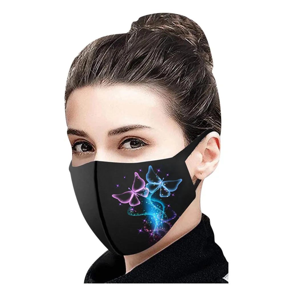 Маска для лица многоразовая с принтом бабочки, 1 шт., бесшовная дыш...