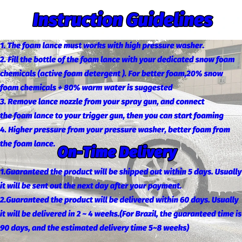 5. Регулируемое потребление химикатов пены снега, переменный угол распыления шаблон от карандаша до вентилятора 60 °, устойчивый к