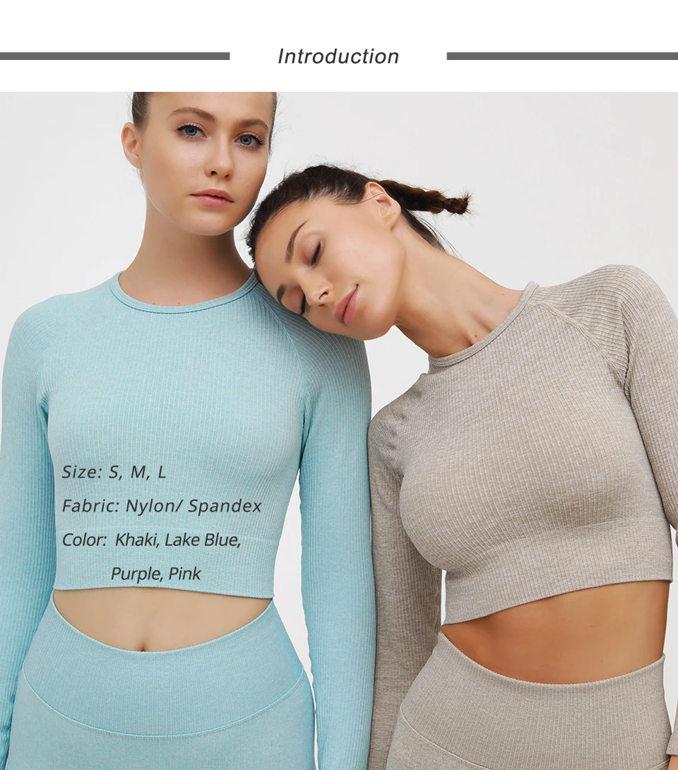 Комплект Для Йоги Женский бесшовный с длинным рукавом спортивный топ с длинными рукавами леггинсы для тренажерного зала, спортивная одежда для фитнеса одежда для тренировок