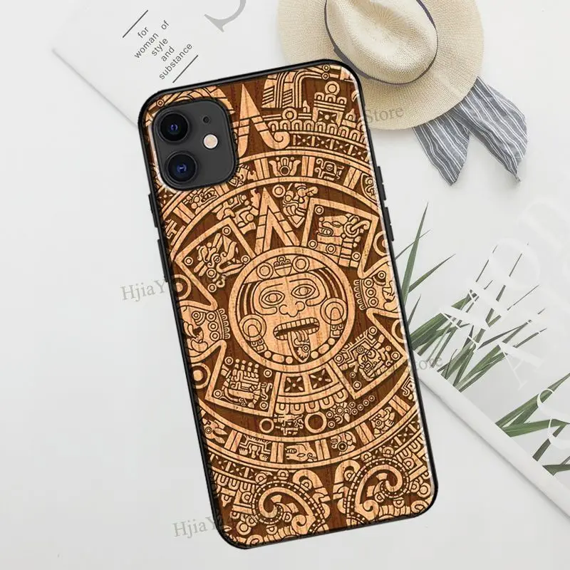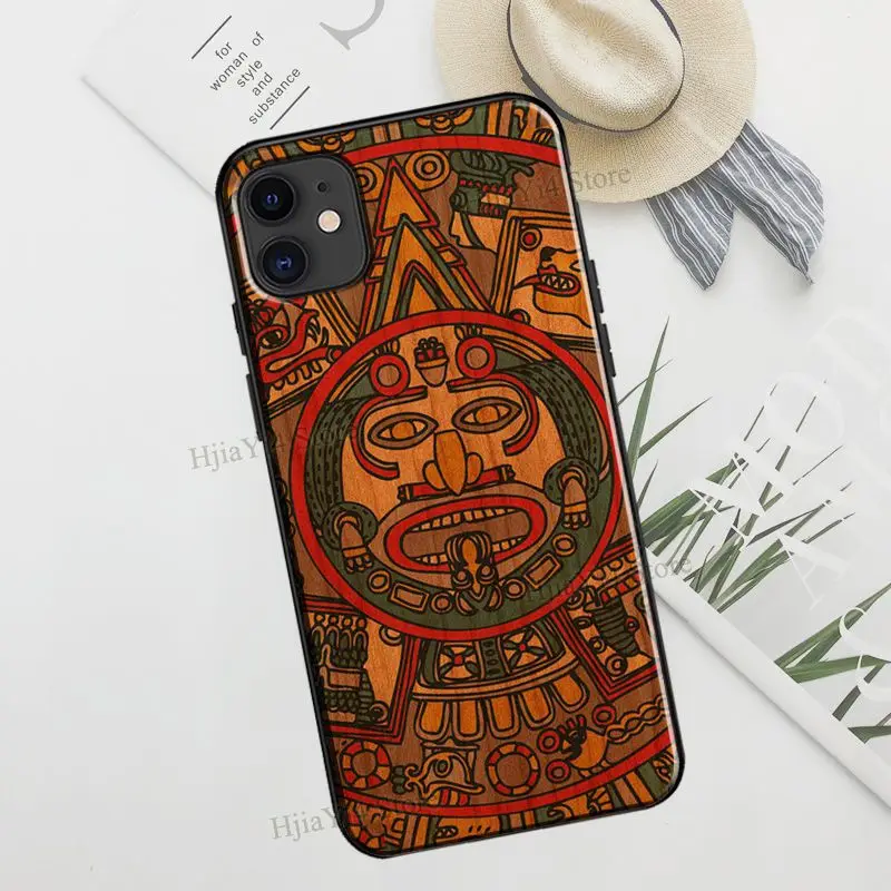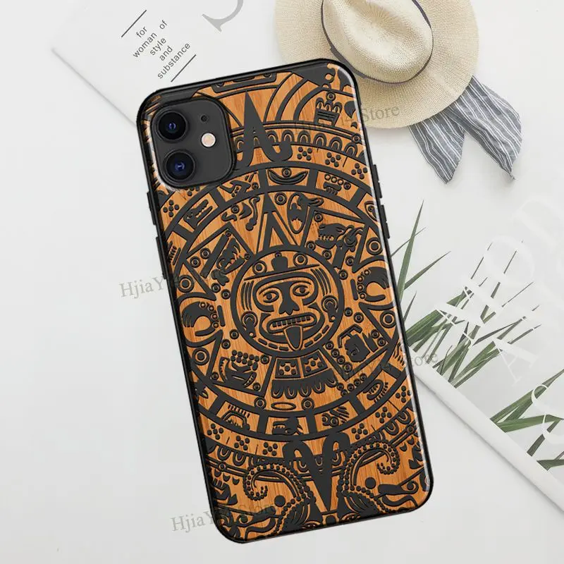 Чехол из ТПУ для iPhone 12, 13 Pro Max, mini, X, XR, XS Max, 6S, 7, 8 Plus, SE 2020, 11 Pro Max, с календарем майя и деревянным узором
