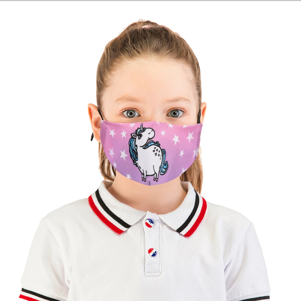 Детская многоразовая моющаяся маска для лица, милая маска для рта в виде единорога с фильтром PM2.5, регулируемые ремешки, пылезащитные маски от гриппа