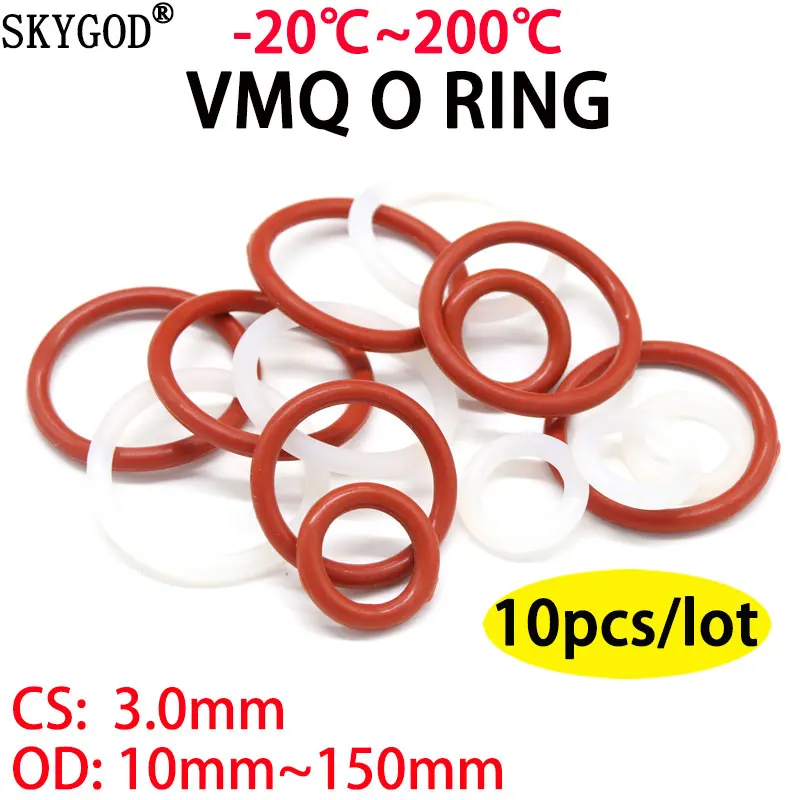 Черноебелое Силиконовое уплотнительное кольцо VMQ, диаметр 3 мм, диаметр 10 150 мм, водонепроницаемая резиновая Изолированная круглая уплотнительная прокладка пищевого класса, 10 шт.