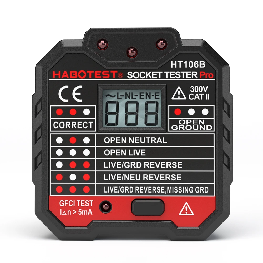 Тестер для электрических розеток HABO, вилка стандарта ЕС, США, Великобритании, нейтральный заземляющий провод, переключатель полярности, настенный выключатель, испытание на утечку