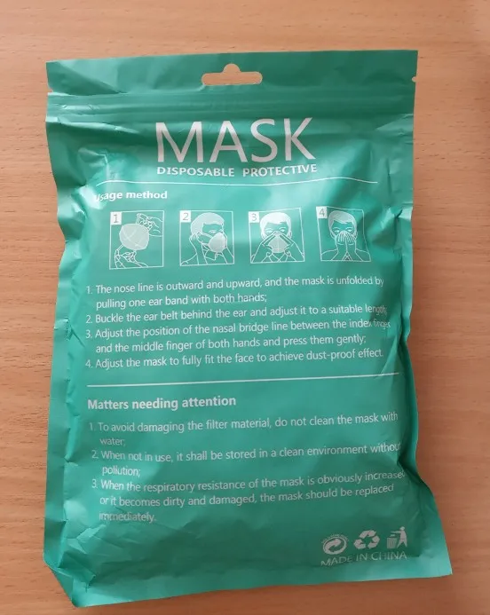 Упаковка: 10 шт/1 сумкаМатериал: Нетканая ткань. ТеплоизоляцияХлопокВес: 5g/МаскаКласс: маска fpp2/ffp2mask ce / mascherina ffpp2Mascherine: mascarillas adultos