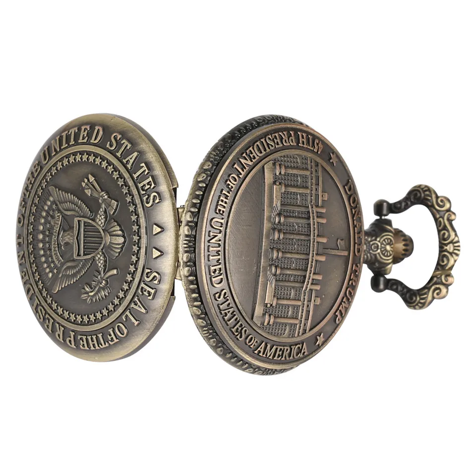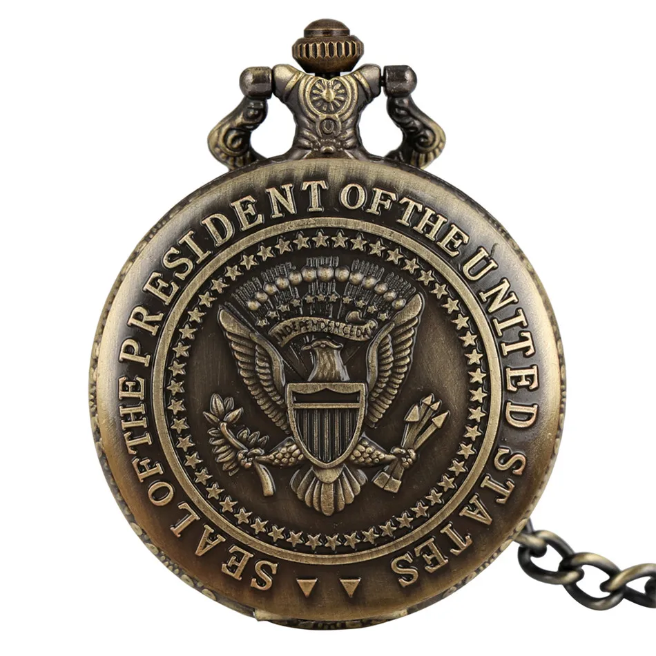 США президентская печать бронзовые кварцевые карманные часы Белый дом задняя крышка кулон ожерелье карманные часы сувенирные часы подарки