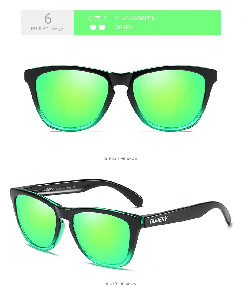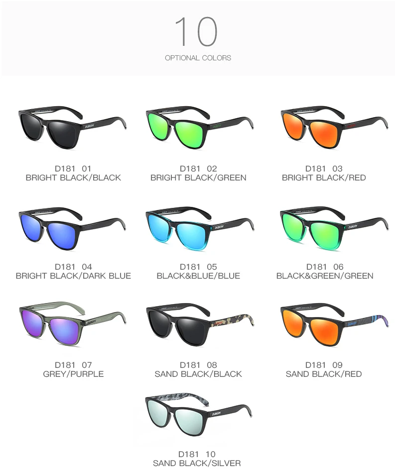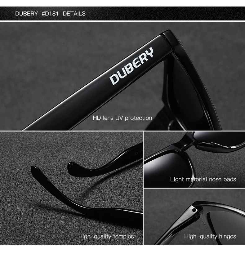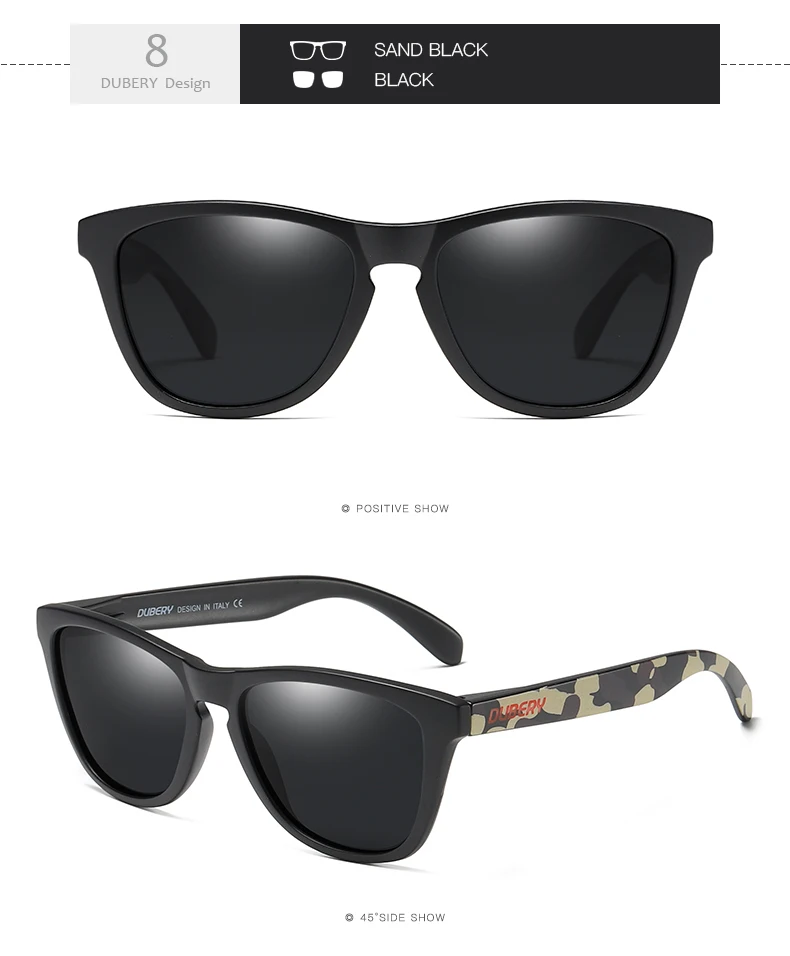 Солнцезащитные очки DUBERY мужские, винтажные поляризационные темные очки UV400, для вождения, черные квадратные, 8 цветов, модель 181