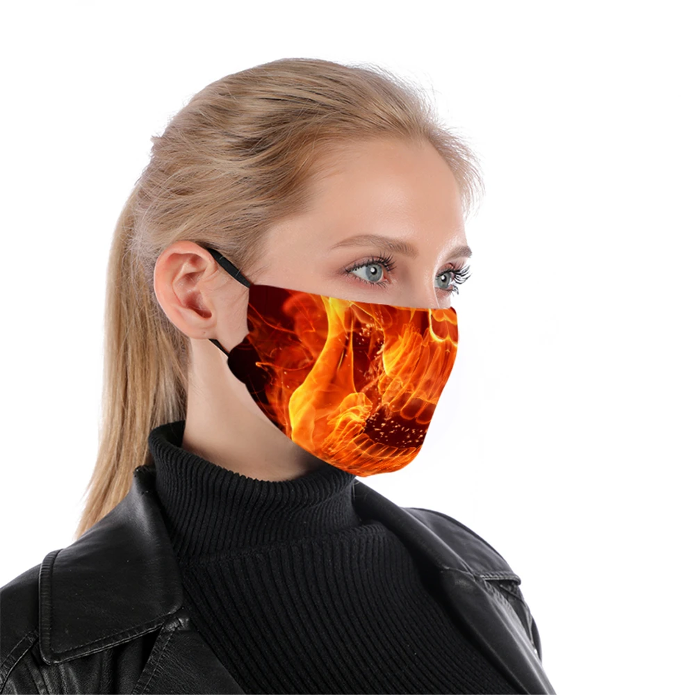 Огонь на Хеллоуин маска регулируемый плечевой ремень многоразовая маска для полости рта смываемая маска для лица с фильтром PM2.5 Для женщин человек защитная маска