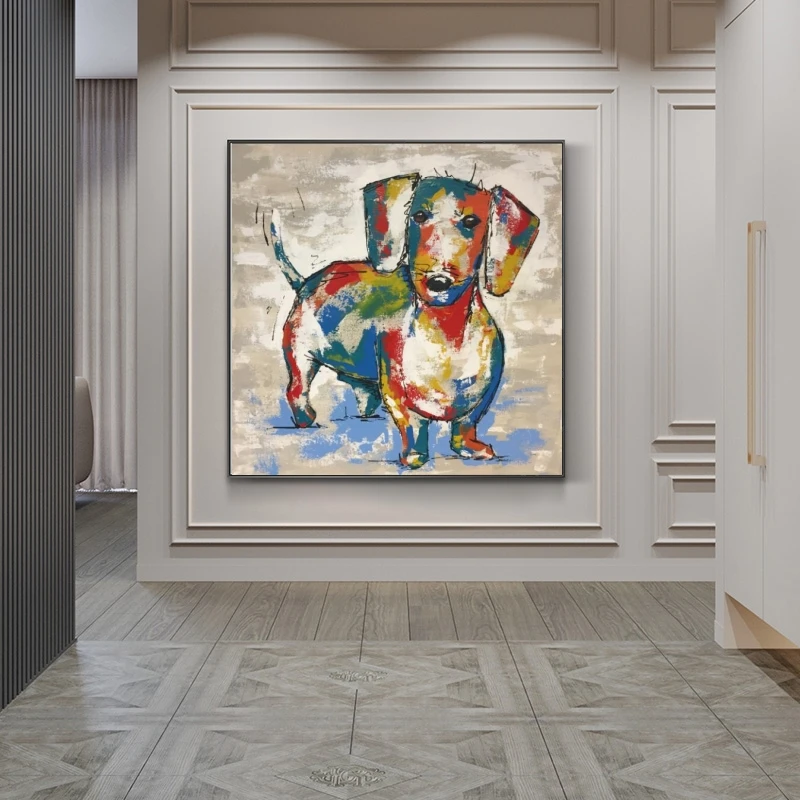 Граффити в виде таксы собака холст настенные картины абстракция соб...
