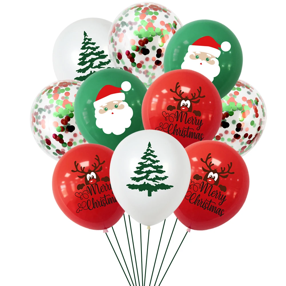 10 шт., воздушные шары с олень рождественское Санта-Клаусом, елочкой, конфетти, новогодние, рождественские украшения для дома