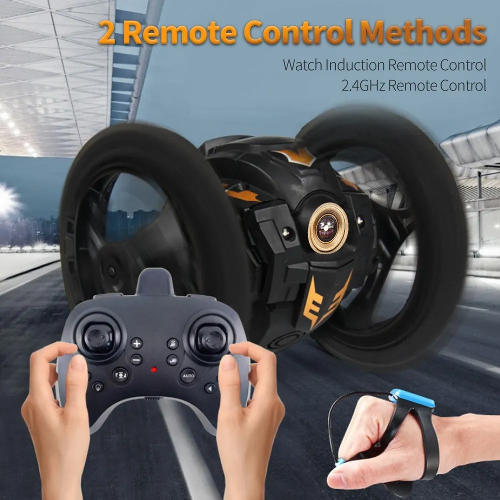 Автомобиль с дистанционным управлением: этот потрясающий прыгающий автомобиль с 2 большими противоударными колесами и веселыми огнями и звуками.