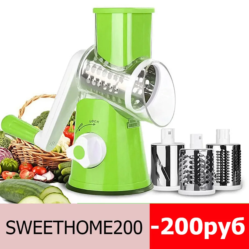 Тёрка -Измельчители, механическая ручная + 3 Насадки.Терка выполнена из пластика и высококачественной стали. Вакуумная присоска надежно закрепляет устройство на гладкой рабочей поверхности стола. Удобный толкатель защитит ваши руки и позволит без остатка натереть даже самые мелкие кусочки овощей. В набор входят три терочных барабана - крупная терка, средняя терка и шинковка.